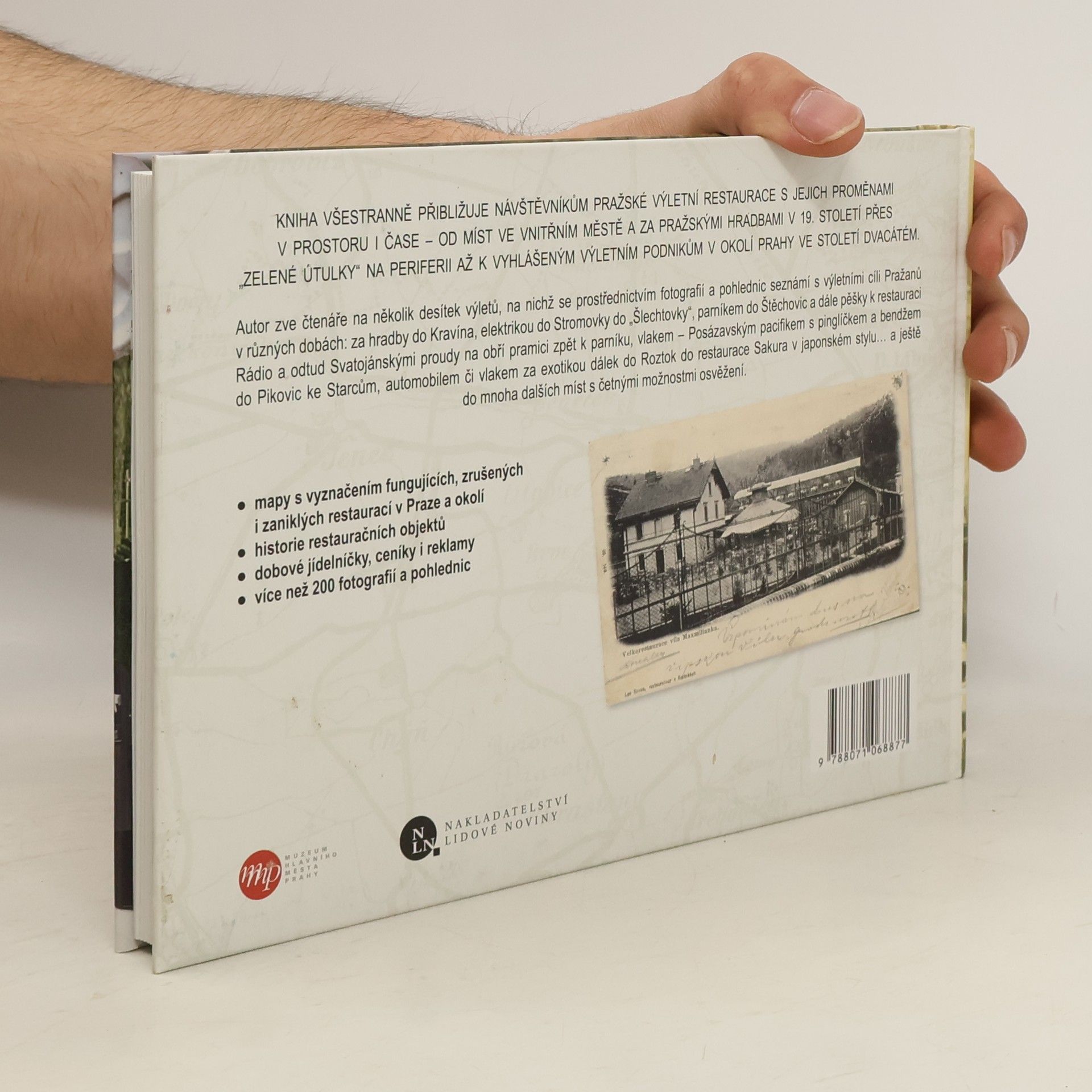 Tato kniha vznikla jako doprovodná publikace výstavy Pražské výletní restaurace realizované v Muzeu hlavního města Prahy od září 2010 do března 2011. Záměrem autora bylo představit místa odpočinku a občerstvení Pražanů a jejich proměny v prostoru i čase - od vltavských ostrovů až ke středočeským výletním podnikům, od druhé poloviny devatenáctého století do konce třicátých let století dvacátého včetně příležitostných časových přesahů směrem k současnosti. Základ publikace tvoří dobové fotografie, a zejména pohlednice, které představují často jediné doklady o druhdy vyhlášených restauracích.