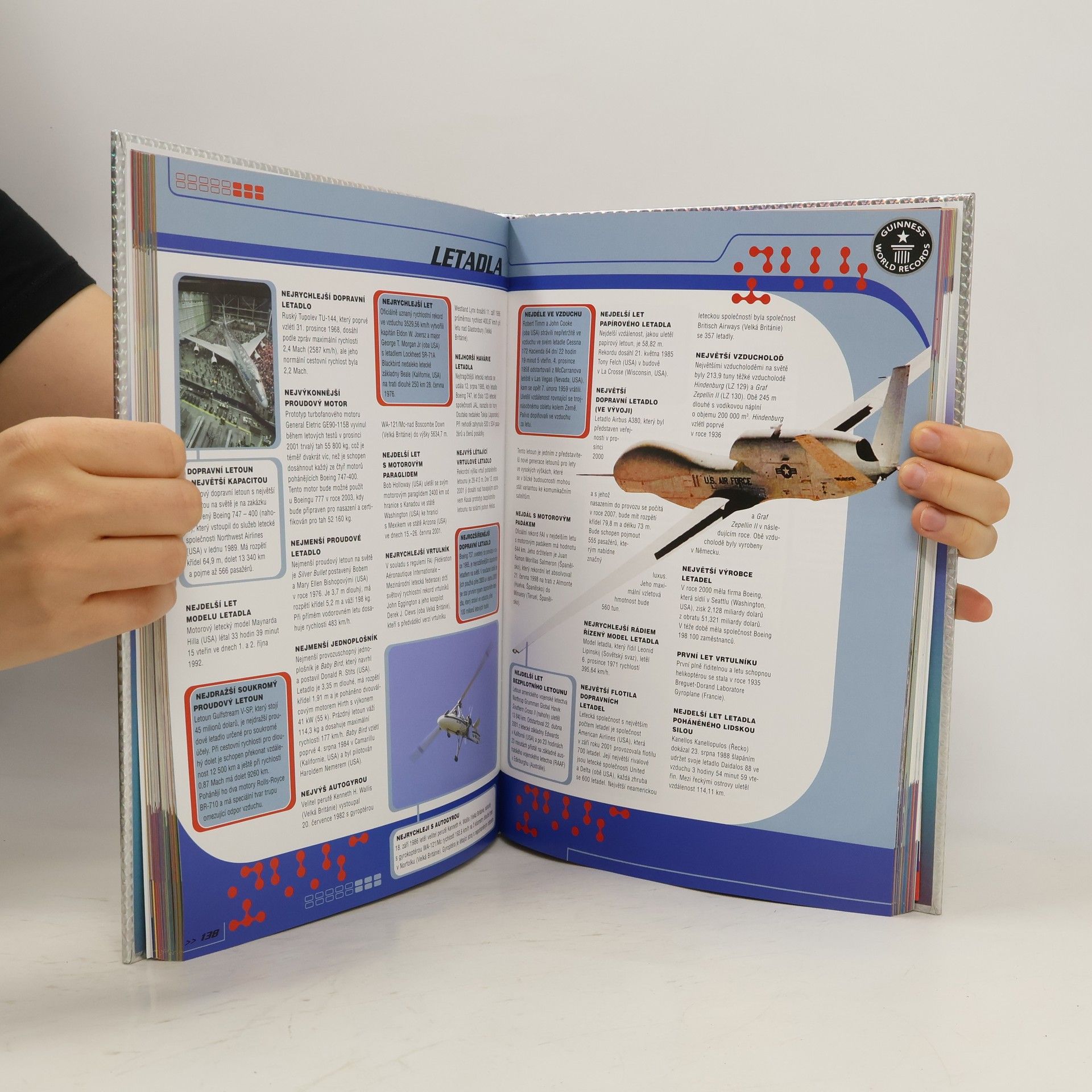 Nejnovější vydání jedné z nejúspěšnějších a nejprodávanějších knih na světě shrnuje nejrozmanitější rekordy, zajímavosti a kuriozity ze všech oborů lidské činnosti včetně sportovních statistik a odkazů na webové stránky.Samostatná část českého vydání je opět věnována českým rekordům.Kniha je vybavena množstvím unikátních a pozoruhodných fotografií.