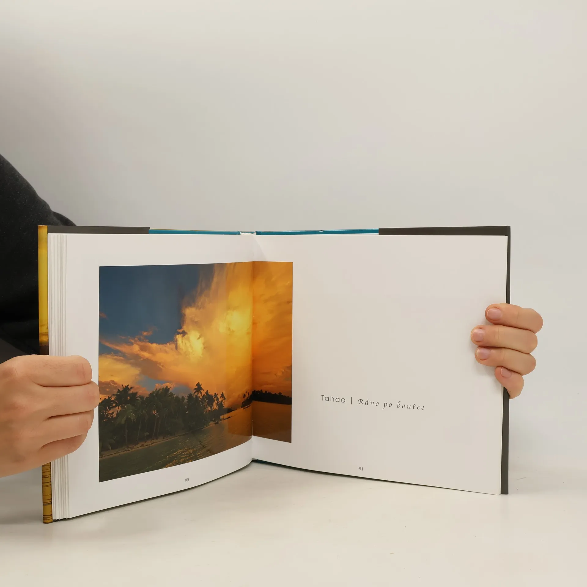 Bouřkové mraky nad ránem, zdola osvícené vycházejícím sluncem; černá vulkanická pláž v záplavě slunečních paprsků a v mlze burácejících vln; pestrá chobotnice nehybně schovaná pod kamennou stěnou; tiché ráno barvy lila anebo prosvícený korál v kanálech vedoucích do laguny...Pokud má fotografování být malování světlem, tak Polynésie je jako světelná paleta plná těch nejzářivějších a nejživějších barev, připravená pro vnímavého malíře. Kreslit takovými barvami byl ohromující, ba přímo mystický požitek.