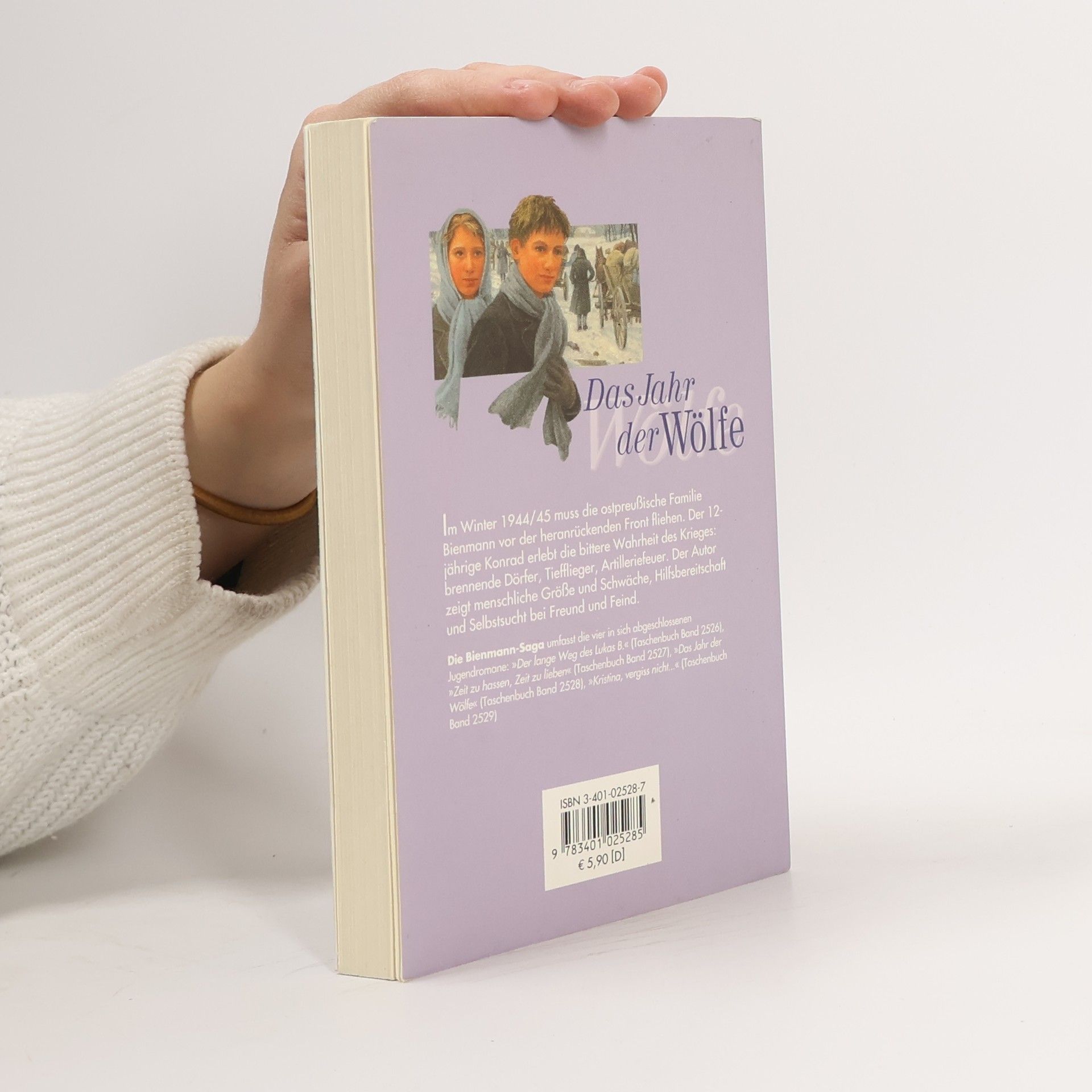 Im Winter 1944/45 muss die ostpreußische Familie Bienmann vor der heranrückenden Front fliehen. Der 12-jährige Konrad erlebt auf dieser Reise die Schrecken des Krieges hautnah: brennende Dörfer, Tiefflieger, Artilleriefeuer sowie die Furcht vor dem Feind. In diesem Jugendromanklassiker zeigt der Autor menschliche Größe und Schwäche, Hilfsbereitschaft und Selbstsucht bei Freund und Feind.