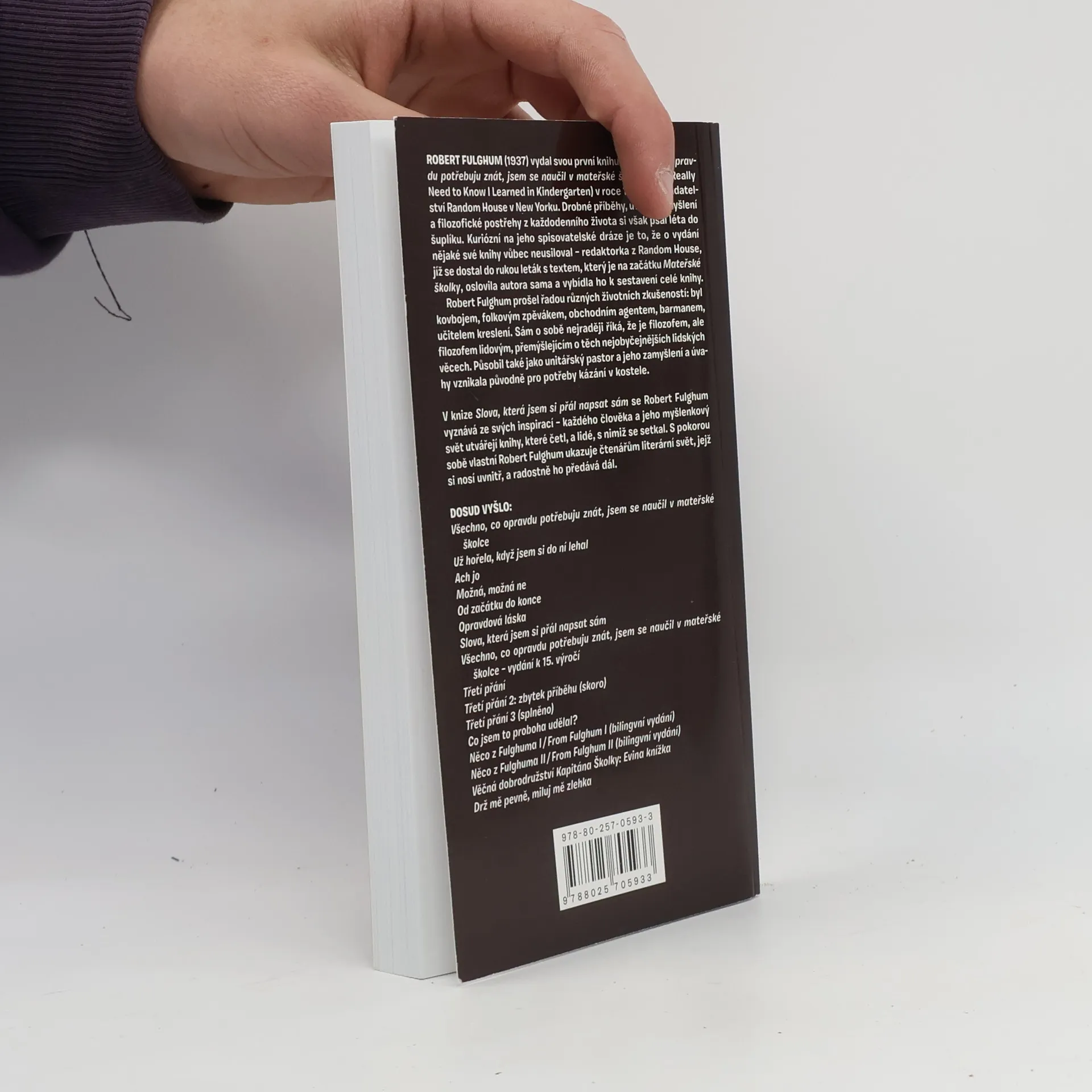 V knize Slova, která jsem si přál napsat sám se Robert Fulghum vyznává ze svých inspirací – každého člověka a jeho myšlenkový svět utvářejí knihy, které četl, a lidé, s nimiž se setkal. S pokorou sobě vlastní autor ukazuje literární svět, jejž si nosí uvnitř, a předává ho tímto dál.