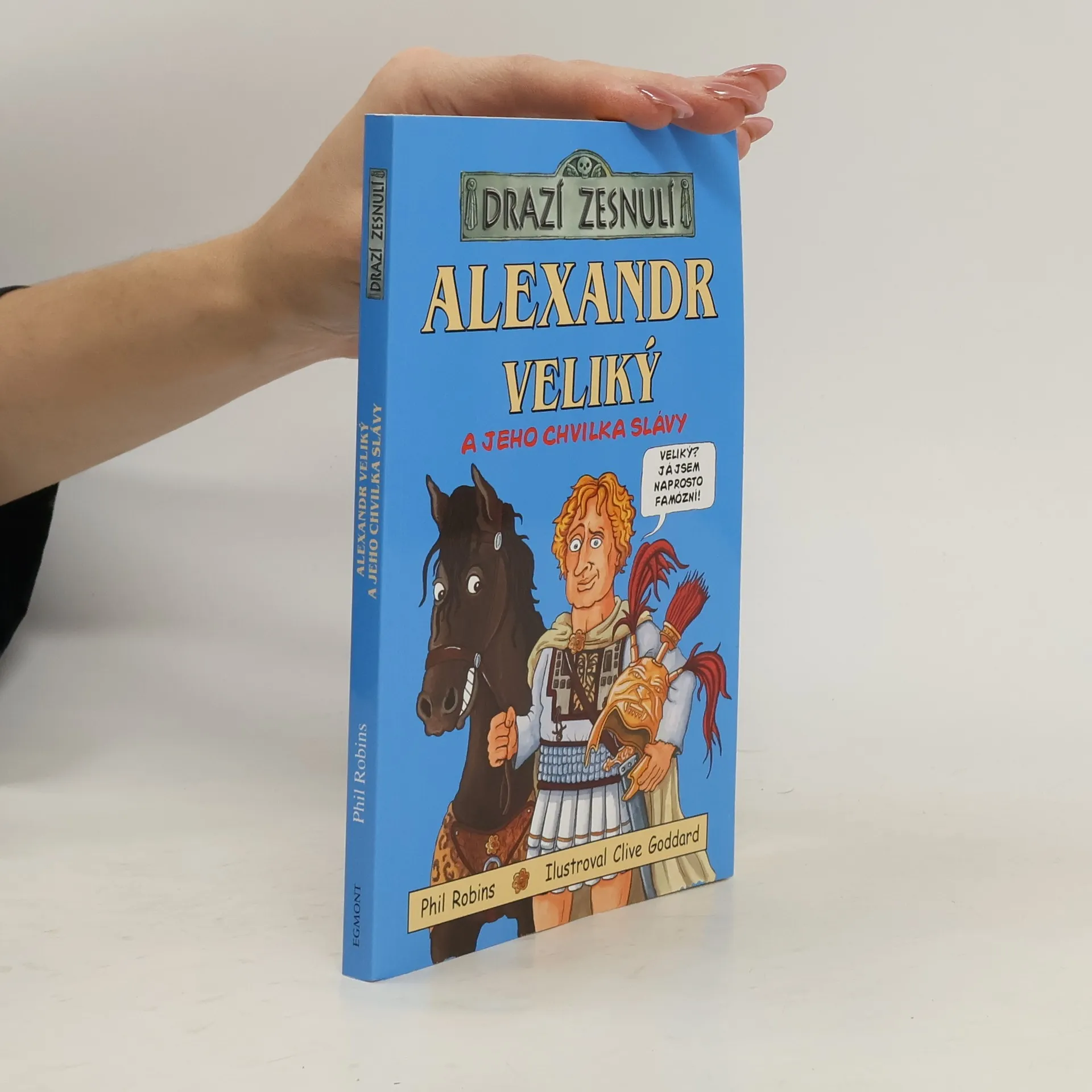 O Alexandrovi Velikém už jste nejspíš slyšeli... Je děsně slavný a děsně drahý zesnulý, protože: - pochodoval s obrovskou armádou přes půlku světa, - dobyl spousty zemí, - a vůbec byl prostě veliký. Ale slyšeli jste, že Alexandr: - postavil tucty nových měst a úplně všechna je pojmenoval po sobě, - říkal všem, že je bůh, - měl nejlepšího kamaráda, který měl čtyři nohy a špičaté uši? Ano, přestože je mrtvý, je Alexandr pořád samé překvapení. Nyní můžete jeho příběh poznat z první ruky díky jeho tajnému deníku, sledovat jeho pokroky v Makedonské poště a zjistit, proč chvilka slávy tohoto velikého muže trvá i dnes, více než 2 000 let poté, co natáhl bačkory. Vítejte v Alexandrově říši, která se rozkládala od evropské řeky Dunaj až tam, kde dnes leží Pákistán!
