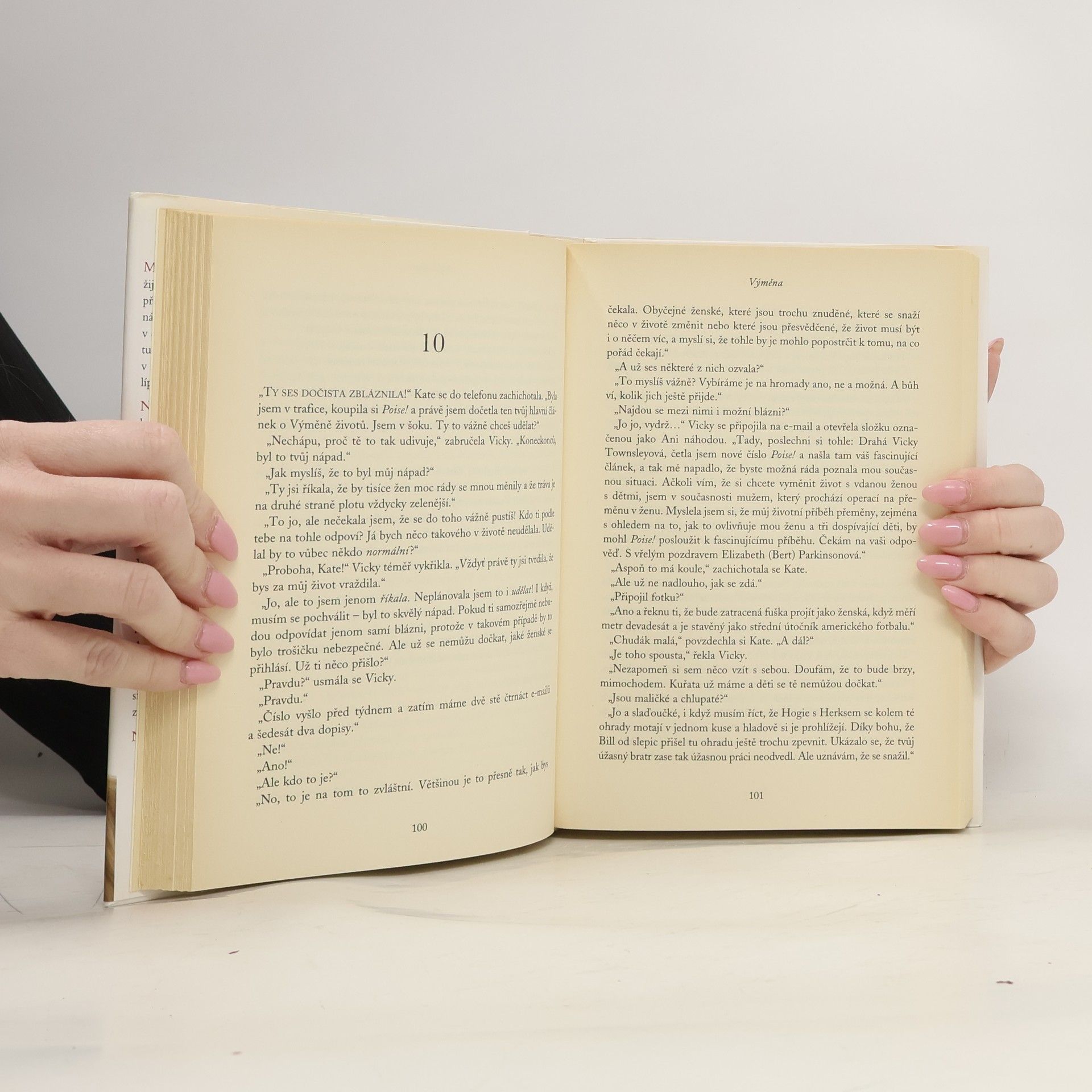 Možná si myslíme, že jsme šťastné, ať už žijeme v manželství, ve velkém domě na předměstí se zbožňujícím mužem a dvěma nádhernými dětmi, nebo samy v bytečku v centru města, máme skvělou práci a spoustu přátel. Ale nehlodá nám přitom vždycky v duši otázka, jestli na tom ti druzí nejsou líp? Že mají to, co chceme my? Na první pohled se zdá, že Vicky Townsleyová má všechno. Vede textové oddělení v mimořádně úspěšném časopise pro ženy, žije v Londýně, je svobodná, má peníze a k tomu úspěch. Ale všeho by se ve zlomku vteřiny vzdala, aby mohla mít místo toho muže, děti a domek na venkově s klasickými kamny a velkými psy. Amber Winslowová má přesně to, co Vicky chce, jenomže na druhé straně Atlantiku: velké sídlo v Connecticutu, nezbytného zlatého retrívra, děti (a k nim samozřejmě chůvu na plný úvazek) a spoustu charitativních závazků v místní Ženské lize. Ale ani Amber není šťastná. Nenašla v úlohách matky a manželky naplnění. Když tedy objeví inzerát, který hledá ženu ochotnou vyměnit si na čas život se svobodnou novinářkou z Londýna, napíše do redakce dopis. Nečekala, že by ji mohli vybrat… Hrdinky knih Jane Green stárnou spolu s autorkou. Od prvních hledání prince na bílém koni přes velké lásky ke sňatkům a prvním dětem, jak jsme viděli v jejích předchozích titulech.