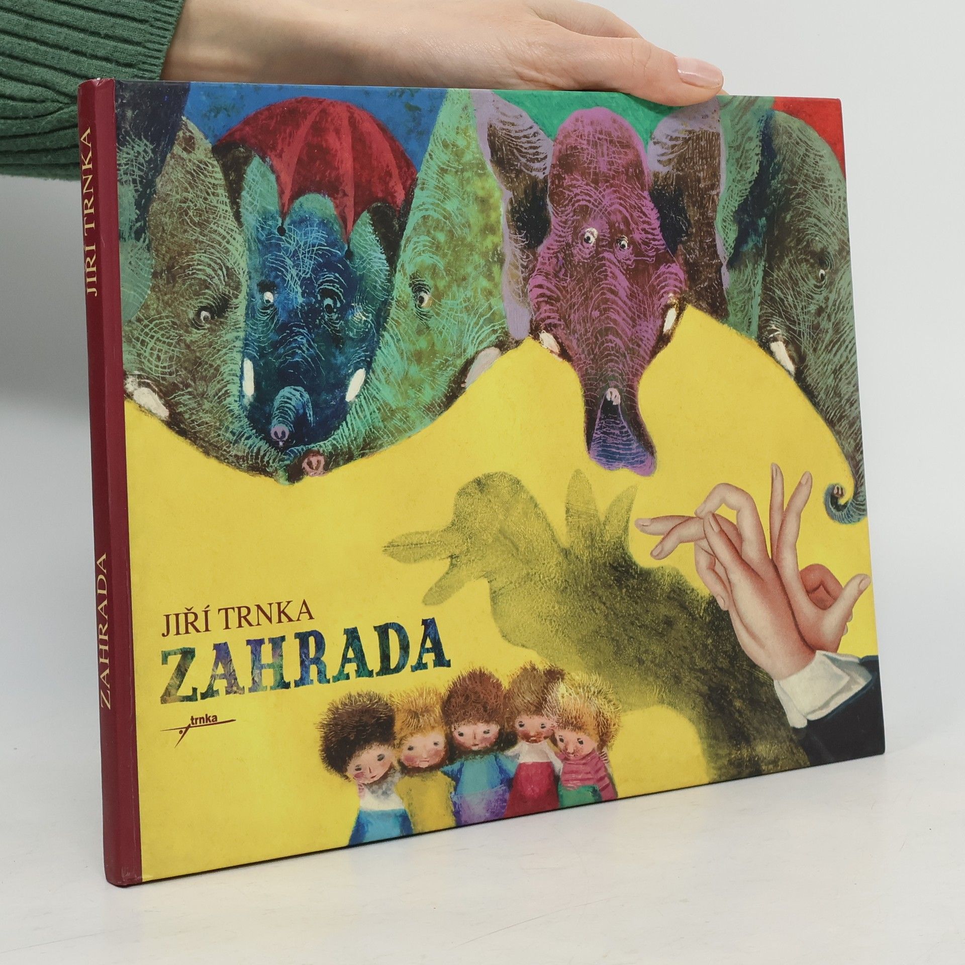 Zahrada Jiřího Trnky patří mezi díla, která léta oslovují děti i dospělé. Má své kouzlo, poezii i humor. Pohádku Trnka nejen ilustroval, ale sám i napsal. Pět kluků otevře starou rozvrzanou branku a vejdou do krásné, tajemné zahrady, kde potkají kamenného trpaslíka, zlomyslného kocoura, učenou velrybu, pět slonů, a odhalují rozličná tajemství. Kouzelný příběh, který známe i z filmového zpracování, je nezapomenutelný.