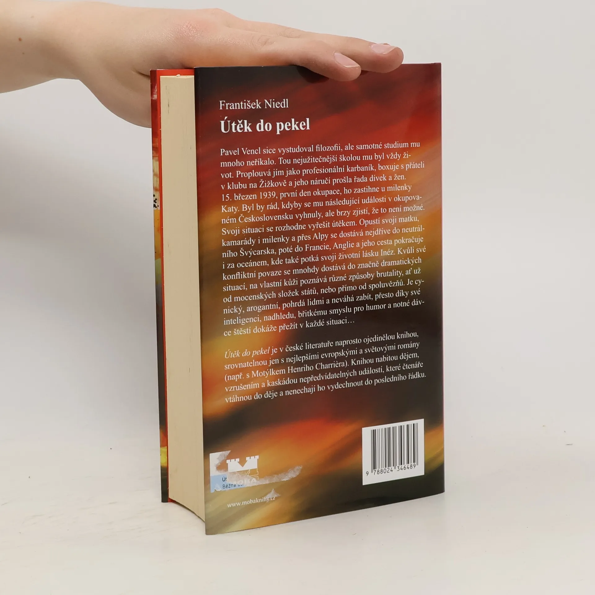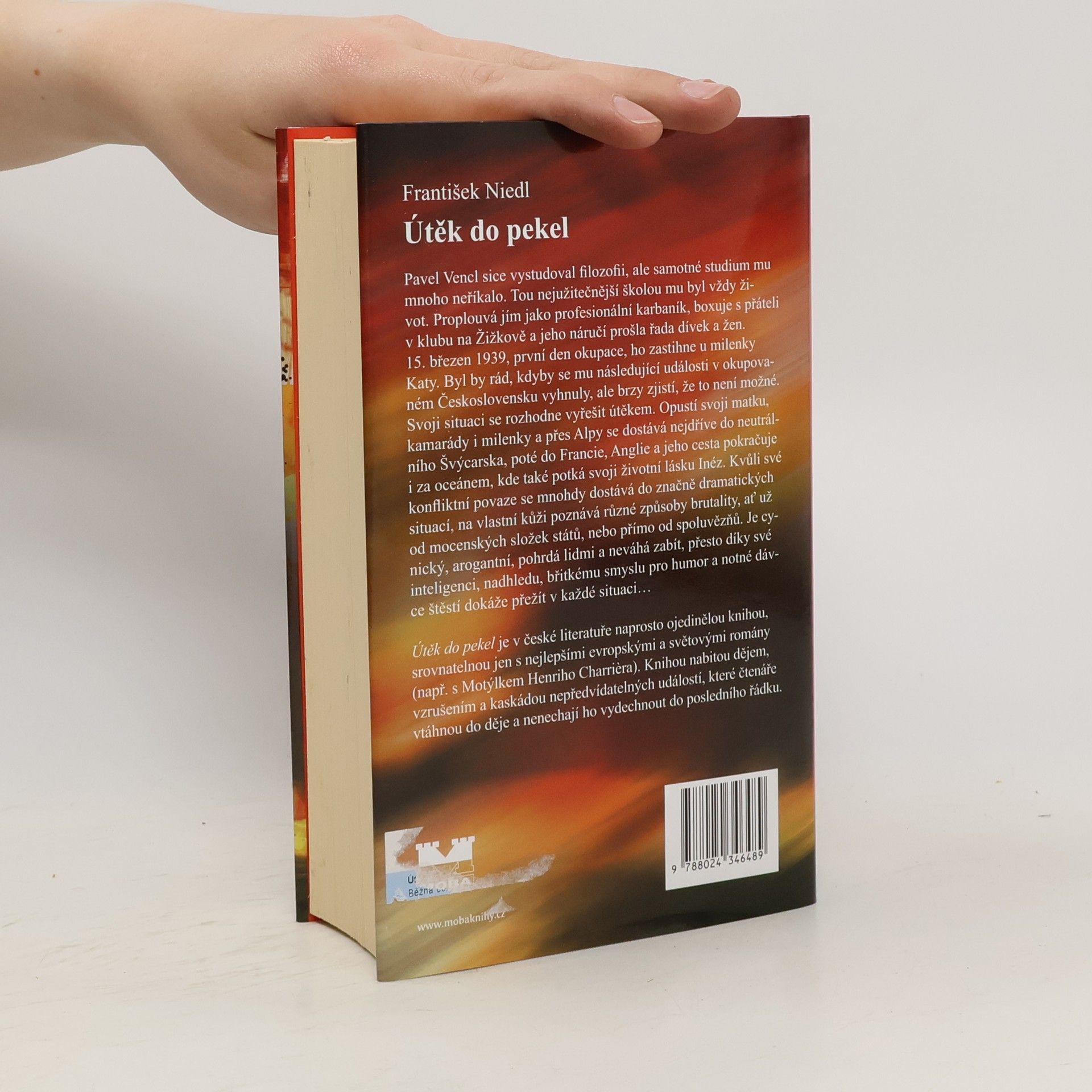 Pavel Vencl sice vystudoval filozofii, ale samotné studium mu mnoho neříkalo. Tou nejužitečnější školou mu byl vždy život. Proplouvá jím jako profesionální karbaník, boxuje s přáteli v klubu na Žižkově a jeho náručí prošla řada dívek. 15. březen 1939, první den okupace, ho zastihne u milenky Katy. Byl by rád, kdyby se mu následující události v okupovaném Československu vyhnuly, ale brzy zjistí, že to není možné. Svoji situaci se rozhodne vyřešit útěkem. Opustí svoji matku, kamarády i milenky a přes Alpy se dostává nejdříve do neutrálního Švýcarska, poté do Francie, Anglie a jeho cesta pokračuje i za oceánem, kde také potká svoji životní lásku Inéz. Kvůli své konfliktní povaze se mnohdy dostává do značně dramatických situací, na vlastní kůži poznává různé způsoby brutality, ať už od mocenských složek států, nebo přímo od spoluvězňů. Je cynický, arogantní, pohrdá lidmi a neváhá zabít, přesto díky své inteligenci, nadhledu, břitkému smyslu pro humor a notné dávce štěstí dokáže přežít v každé situaci… Útěk do pekel je v české literatuře naprosto ojedinělou knihou, srovnatelnou jen s nejlepšími evropskými a světovými romány. Knihou nabitou dějem, vzrušením a kaskádou nepředvídatelných událostí, které čtenáře vtáhnou do děje a nenechají ho vydechnout do posledního řádku.