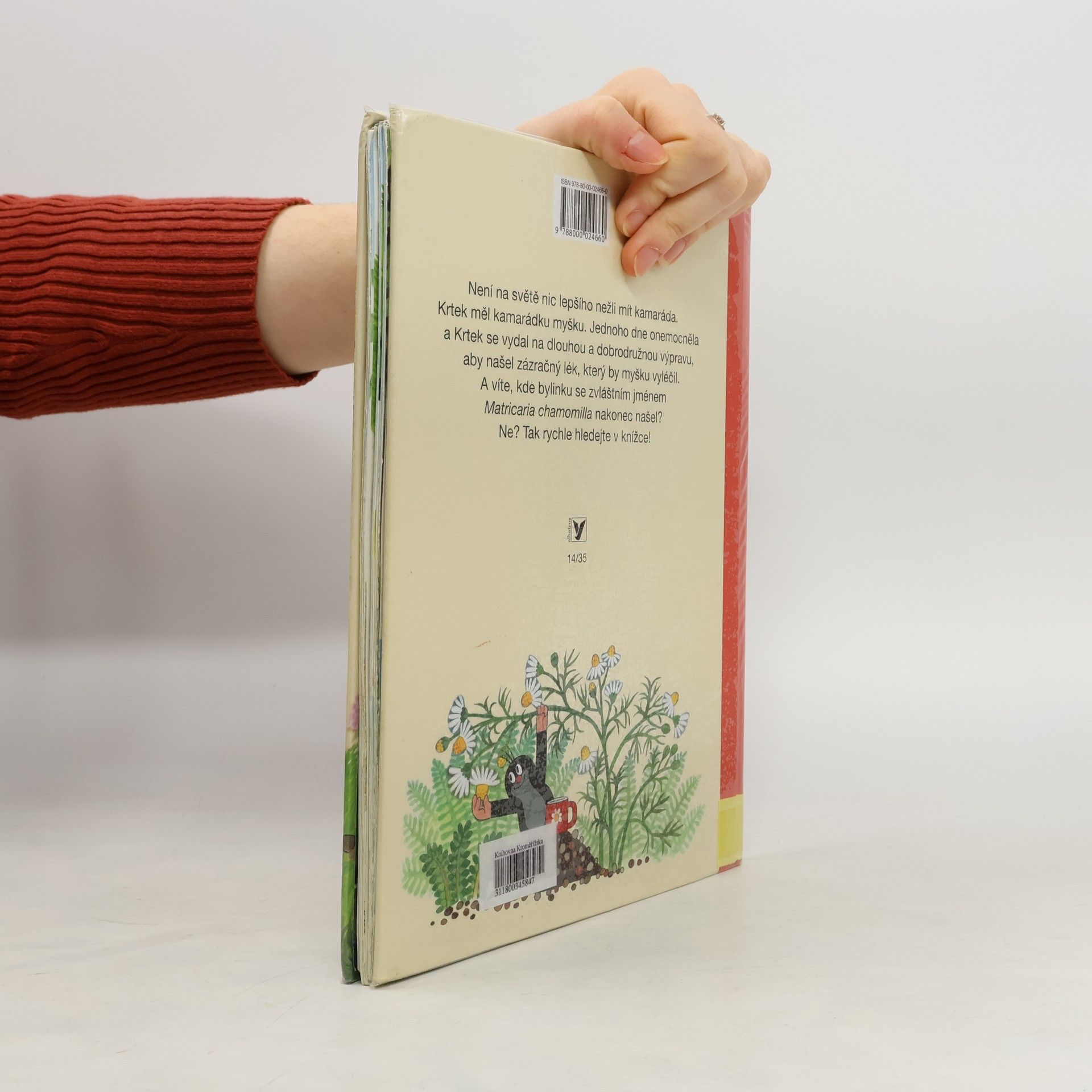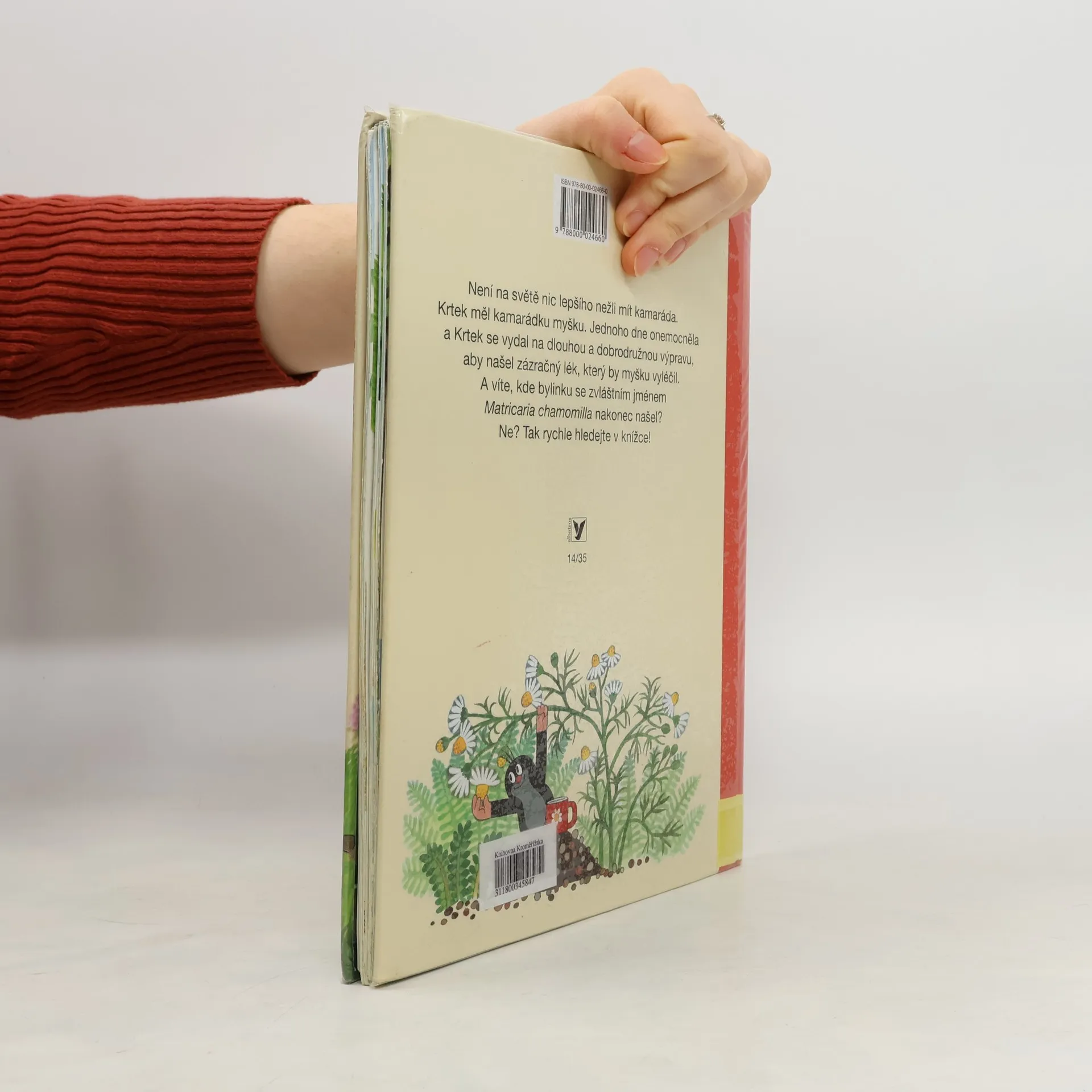 Není na světě nic lepšího nežli mít kamaráda. Krtek má kamarádku myšku. Ta však jednoho dne onemocněla a Krtek se vydal na dlouhou a dobrodružnou výpravu, aby našel zázračný lék, který by myšku vyléčil. Procestoval skoro celý svět - po souši i ve vodě i ve vzduchu. A víte, kde bylinku se zvláštním jménem Matricaria chamomilla nakonec našel? Nevíte? Potom jste ještě nepřečetli tuhle knížku. Vydejte se po Krtkových stopách a najdete ji i vy!