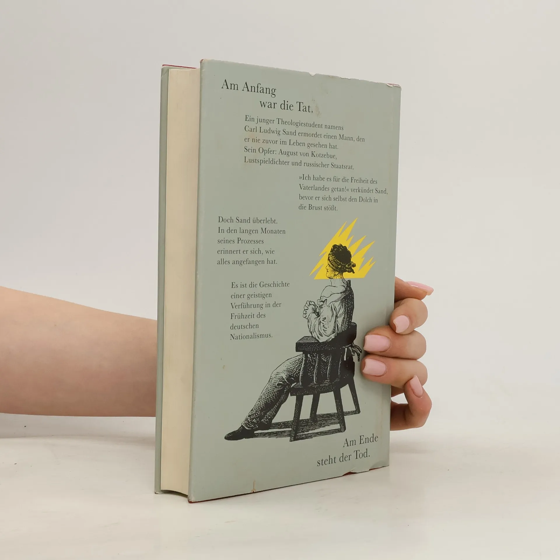 Historischer Roman über den Prozess gegen den von nationaler Begeisterung erfüllten Studenten Karl Ludwig Sand, der im März 1819 in Mannheim den Komödienschreiber August von Kotzebue ermordete.