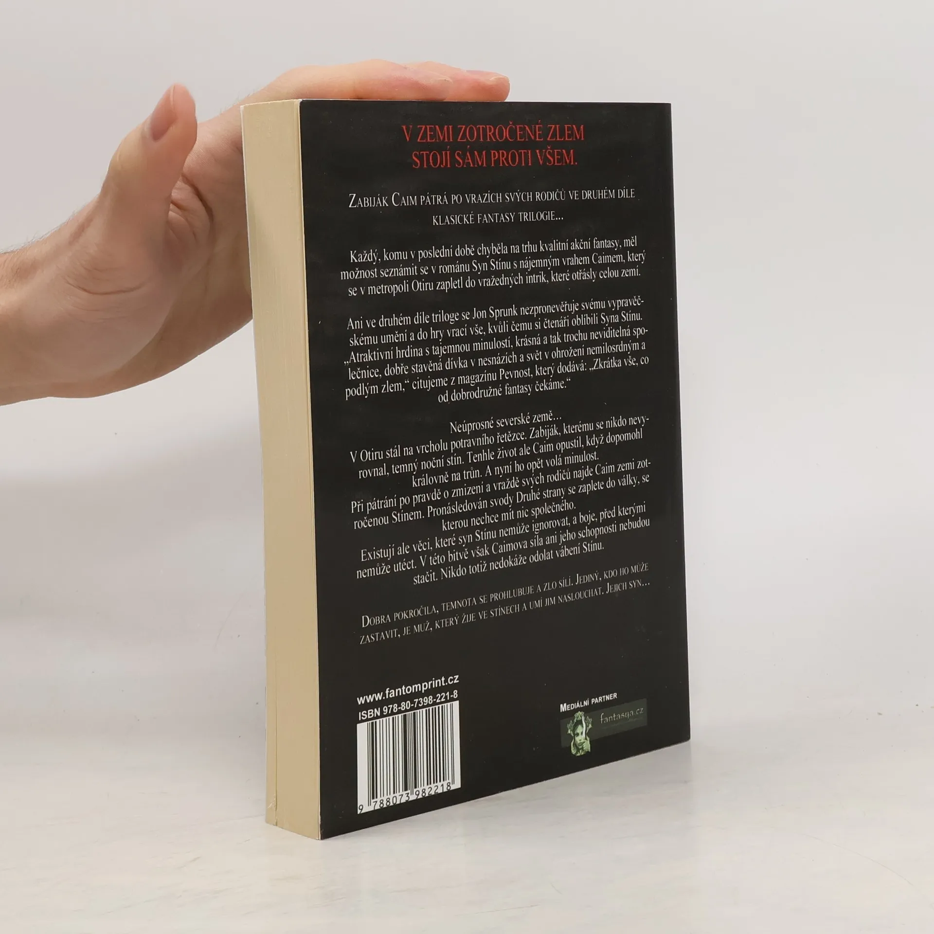 Neúprosné severské země… V Otiru stál na vrcholu potravního řetězce. Zabiják, kterému se nikdo nevyrovnal, temný noční stín. Tenhle život ale Caim opustil, když dopomohl královně na trůn. A nyní ho opět volá minulost. Při pátrání po pravdě o zmizení a vraždě svých rodičů najde Caim zemi zotročenou Stínem. Pronásledován svody Druhé strany se zaplete do války, se kterou nechce mít nic společného. Existují ale věci, které syn Stínu nemůže ignorovat, a boje, před kterými nemůže utéct. V této bitvě však Caimova síla ani jeho schopnosti nebudou stačit. Nikdo totiž nedokáže odolat vábení Stínu.