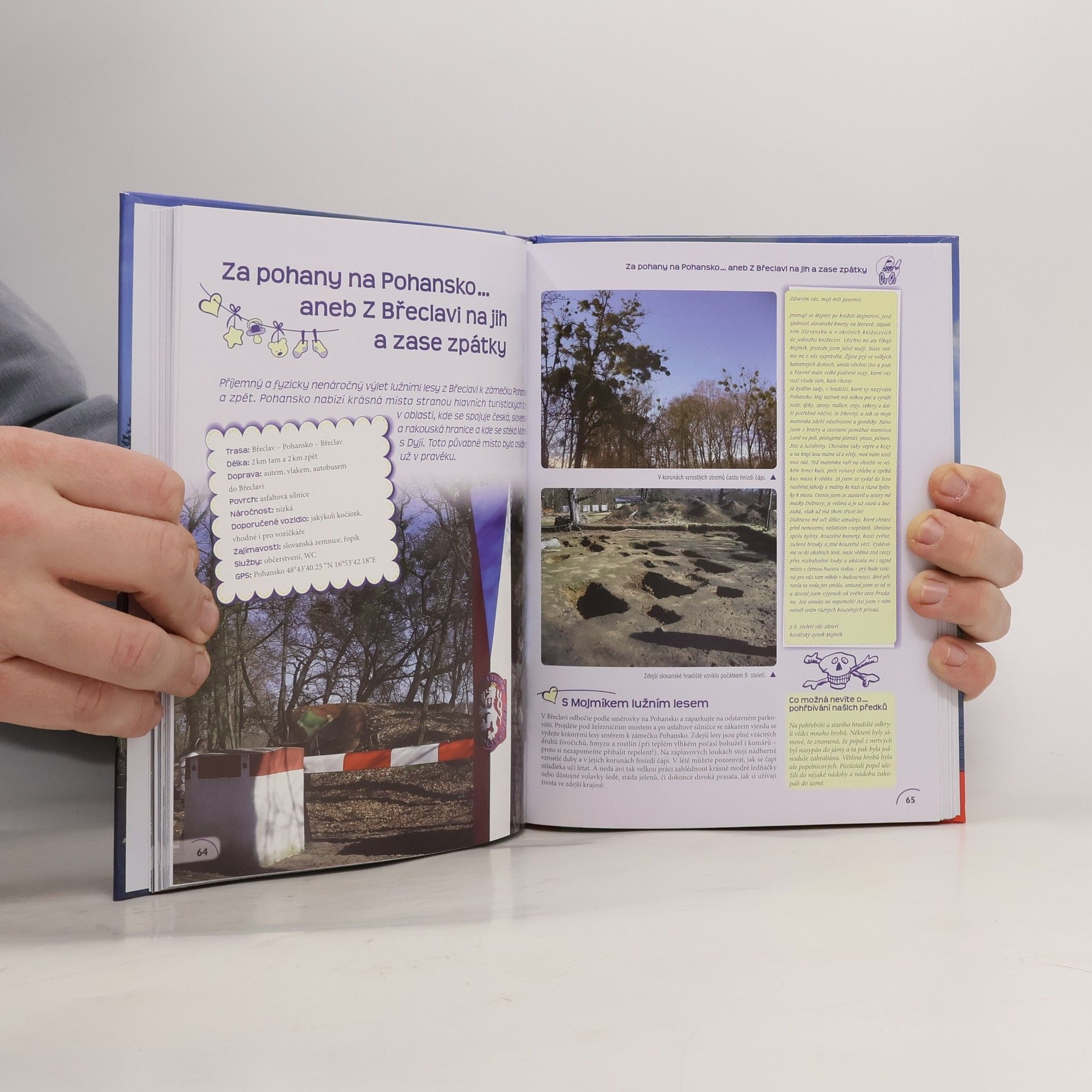 Průvodce Moravou představuje 34 tipy na výlety vhodné pro rodiny s dětmi. Každá z uvedených tras obsahuje informace o délce, dopravě, povrchu (důležité z hlediska kočárku), zajímavostech a službách. Vlastní text uvádí stručné údaje o historii objektů, zkušenosti z cesty, otvírací dobu a množství ilustračních fotografií. Doplněno výčtem her vhodných ke zpestření výletu.