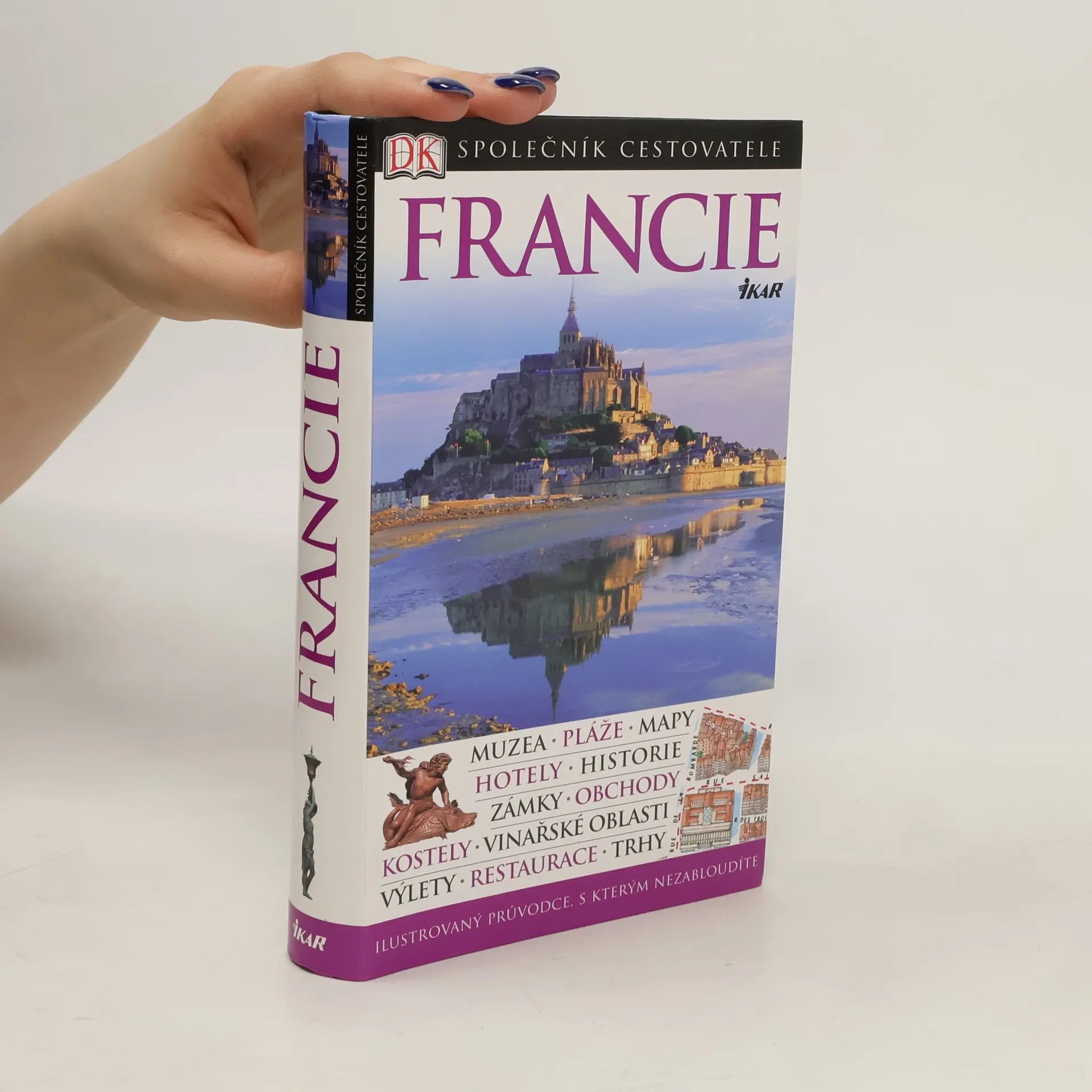 Poznávejte svět na vlastní oči. Přes 2000 barevných fotografií, ilustrací a map Průřezy budov a plány podlaží všech významných památek Procházky, cesty malebnou krajinou a nejkrásnější tematické výlety Vizuální průvodce kulinářskými specialitami jednotlivých regionů od Alsaska po Provence Informace o nejlepších vinařských oblastech, trzích a slavnostech po celé zemi