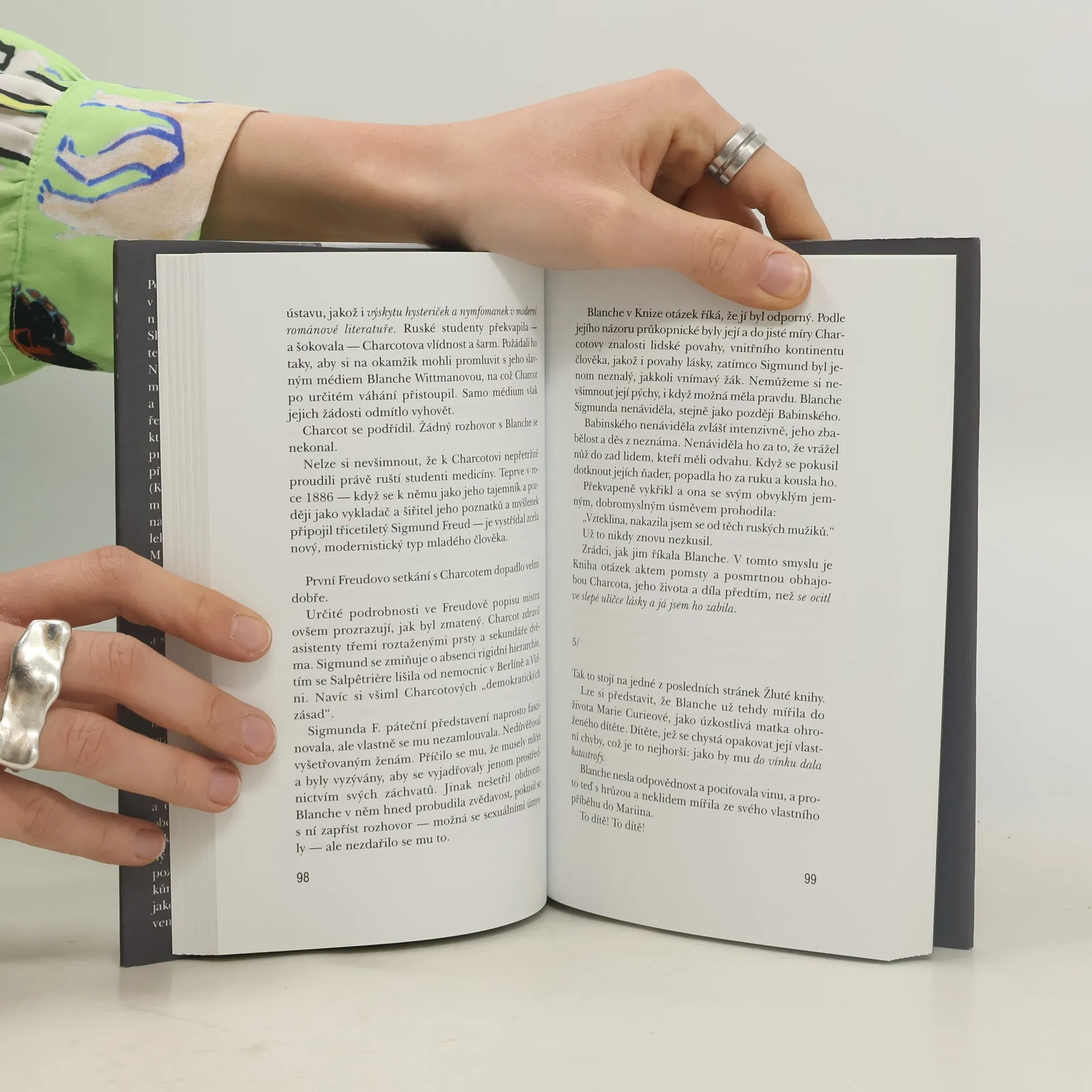 Marie Curie-Sklodowská, nositelka Nobelovy ceny, a její asistentka Blanche jsou protagonistkami netradičního románu, příběhu dvou žen, které osudově poznamenaly jejich vztahy s muži - a radioaktivní záření. Autor, jako obvykle ve svých pracích, čerpá z autentického, dokumentárního materiálu, avšak jeho kniha není pouhou literaturou faktu. Historické události a osoby mu slouží jako základ, z něhož vychází k velmi osobnímu, básnivému eseji-románu o touze po lásce... Zdánlivě tedy pouze komentuje deníkové zápisy či vzpomínky konkrétní historické osoby - Blanche Wittmanové, pomocnice Marie Curieové a přítelkyně proslulého doktora Charcota, který s ní a na ní experimentoval při léčení hysterie pomocí hypnózy. Od samého začátku víme, s jakým nebezpečím si Blanche nevědomky zahrávala, když spolu s Marií Curieovou pracovala se smolincem a víme, jaké následky jí to přinese. Další nebezpečná hra se však vznáší nad příběhem, nad osudy všech postav: Hra s láskou, s krásou, fascinací tajuplnem, (které zde zosobňuje podivuhodné radioaktivní záření), také hra o lásku. Blanche se ve svých zápiscích snaží vědecky vysvětlit pravou podstatu lásky a spisovatel jde se svým příběhem daleko za a daleko nad: poznáváme myšlenkový svět přelomu století a zároveň se prodíráme záhyby lásky, kterou vědecky vysvětlit rozhodně nejde.