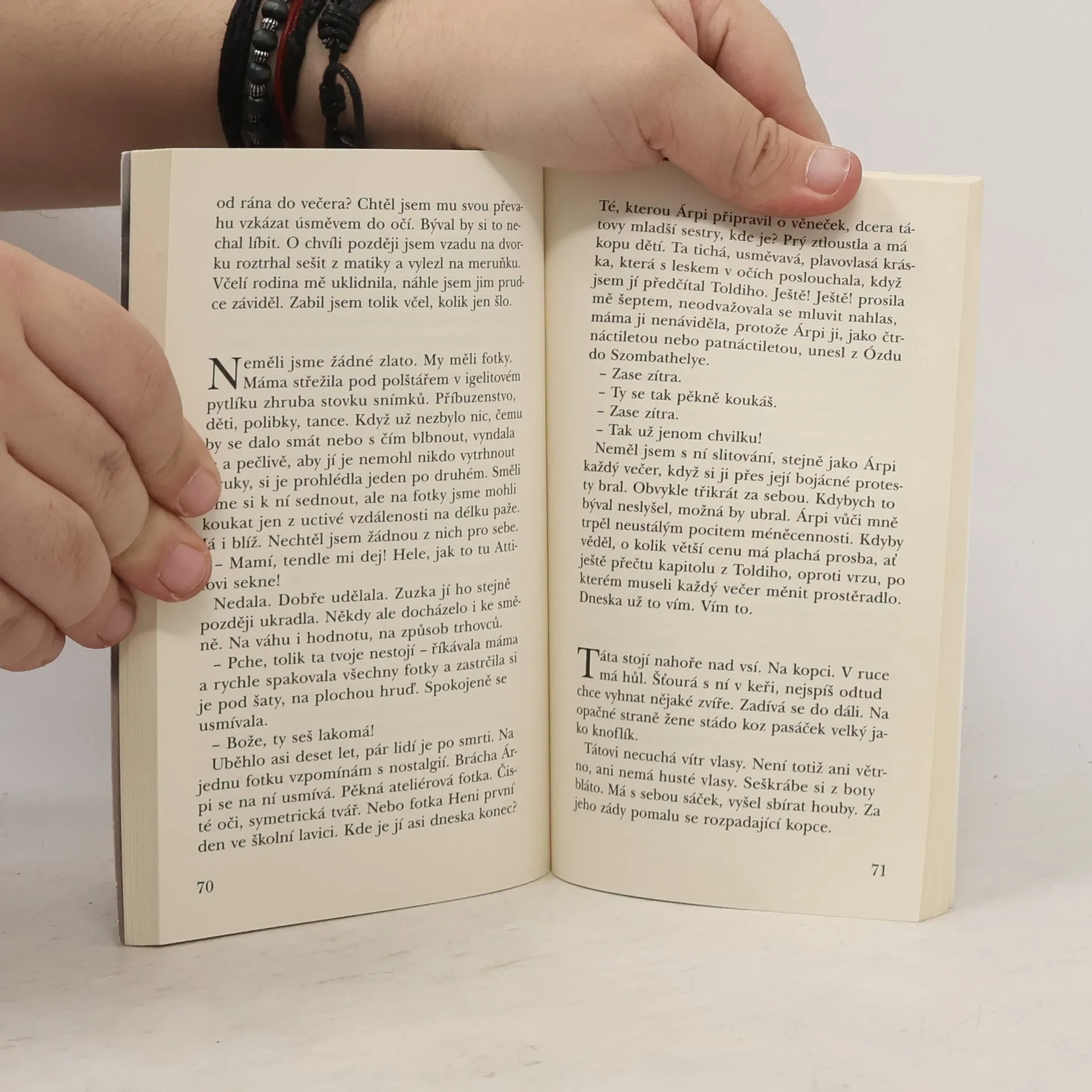 Životopisná próza vynikajícího maďarského spisovatele a básníka romského původu Tamáse Jónáse (1973) vyšla v roce 2013. Kniha představuje cyklus intimních, silně lyrizovaných příběhů z dětství, jejichž vůdčím motivem je vzpomínka na otce. Ten je v próze přítomen jako princip i strašák, vzor i antivzor, a především jako adresát komplikované synovské lásky. Péter Esterházy charakterizoval Tamáse Jónáse slovy „Tamás Jónás je plný příběhů o chudobě, o pocitu bezmoci, o bolesti, o lásce, o tělu, o bohatství a da capo: o chudobě – je plný příběhů a je plný nadání“.