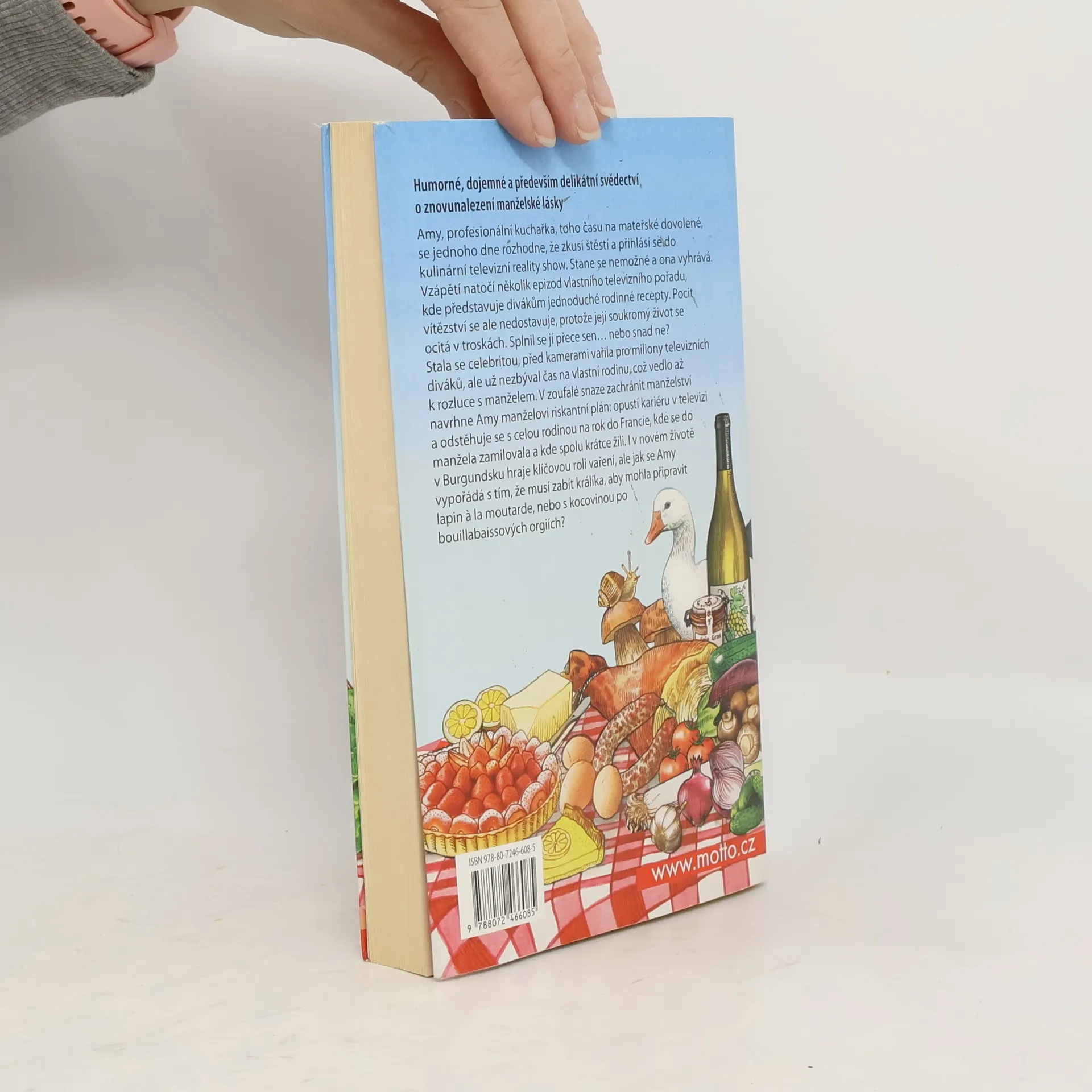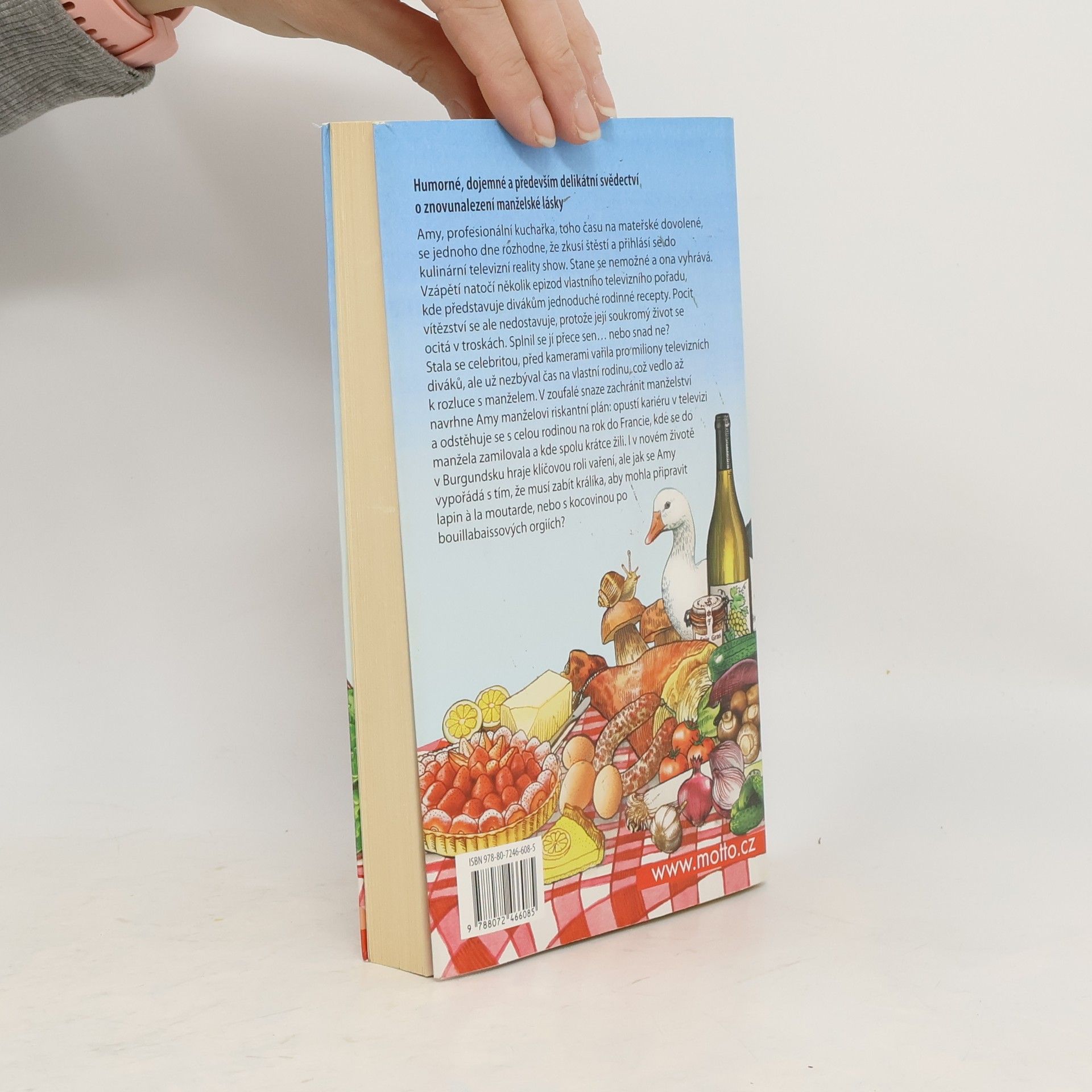 Amy, profesionální kuchařka, toho času na mateřské dovolené, se jednoho dne rozhodne, že zkusí štěstí a přihlásí se do kulinární televizní reality show. Stane se nemožné a ona vyhrává. Vzápětí natočí několik epizod vlastního televizního pořadu Gourmet Next Door (Gurmánka odvedle), Protože už jí nezbýval čas na vlastní rodinu, vedlo to až k rozluce s manželem. V zoufalé snaze zachránit manželství navrhne Amy manželovi riskantní plán: opustí kariéru v televizi a odstěhuje se s celou rodinou na rok do Francie, kde se do manžela zamilovala a kde spolu krátce žili. I v novém životě v Burgundsku hraje klíčovou roli vaření, ale jak se Amy vypořádá s tím, že musí zabít králíka, aby mohla připravit lapin a la moutarde, nebo s kocovinou po bouillabaissových orgiích?
