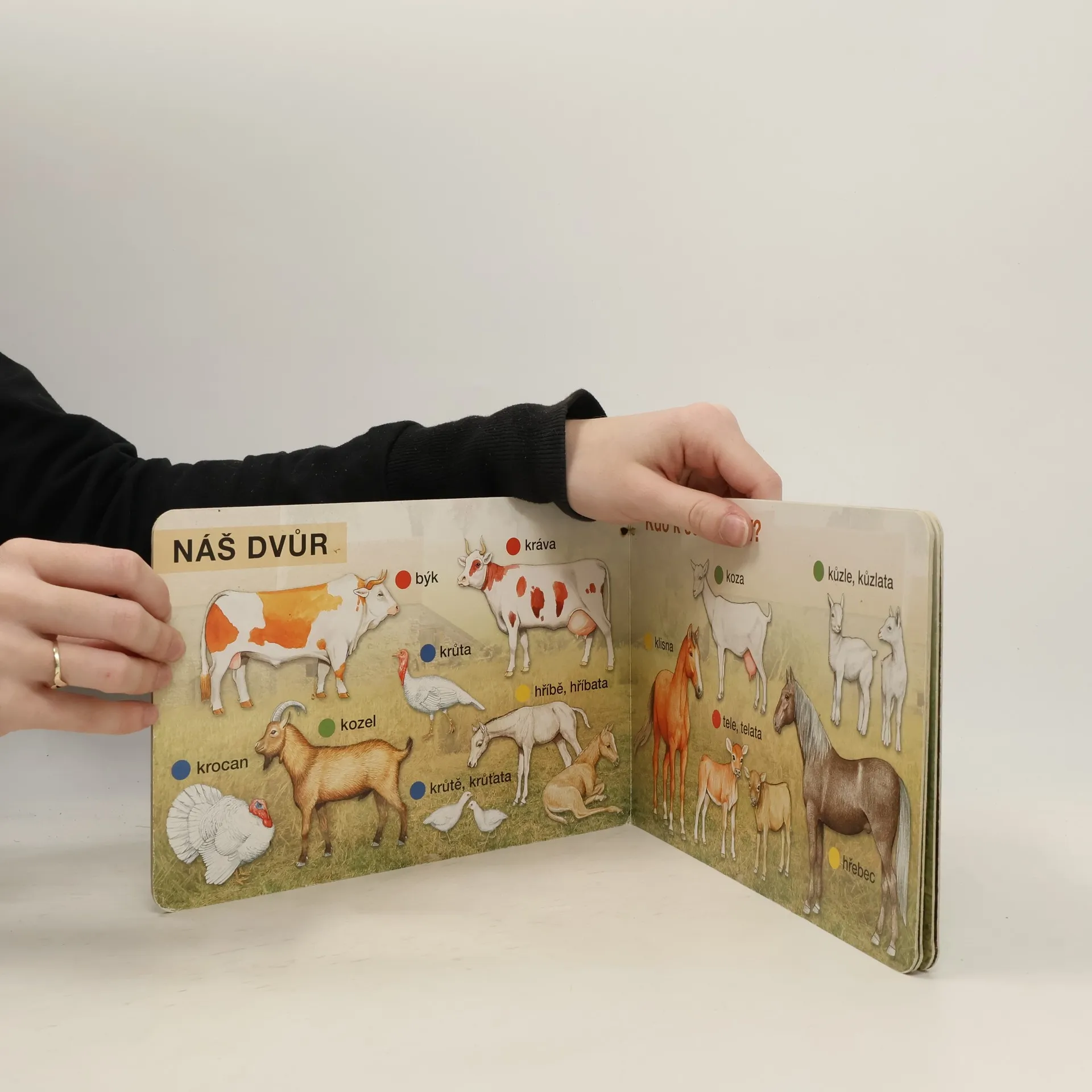 Naučná kniha pro nejmenší - zvířátka. Děti se učí přiřadit např.kohout-slepice-kuřata apod.