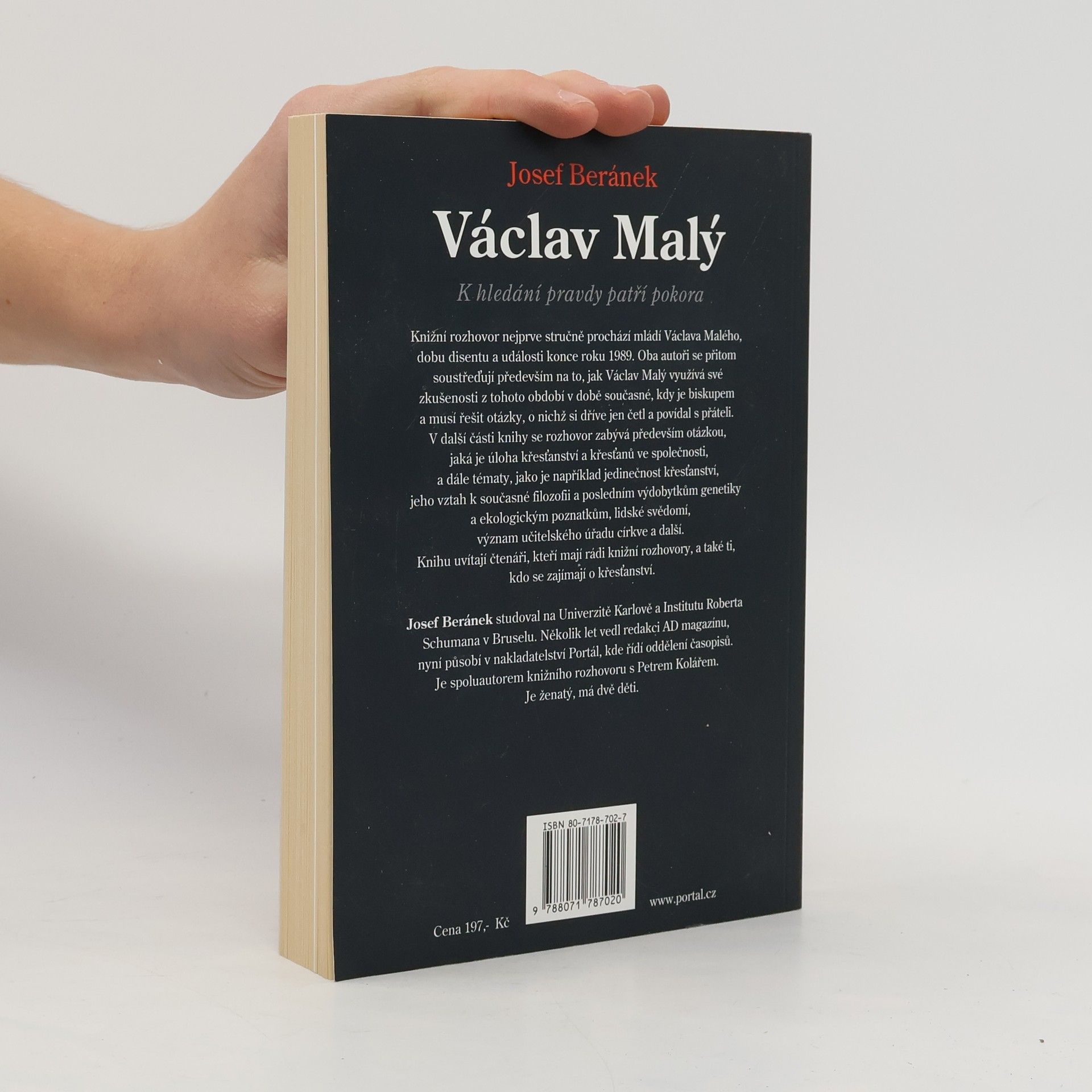 K hledání pravdy patří pokora. Knižní rozhovor v krátkých kapitolách prochází mládí Václava Malého a dobu disentu, soustředí se však především na využití zkušeností z tohoto období v současnosti, kdy je Václav Malý biskupem a musí řešit otázky, o nichž si dříve jen četl a povídal s přáteli a kritiky. Jde o úlohu křesťanství a křesťanů ve společnosti, jedinečnost křesťanství, jeho vztah k současné filozofii, posledním výdobytkům genetiky a lidskému svědomí, neomylnosti papeže, významu učitelského úřadu atp.
