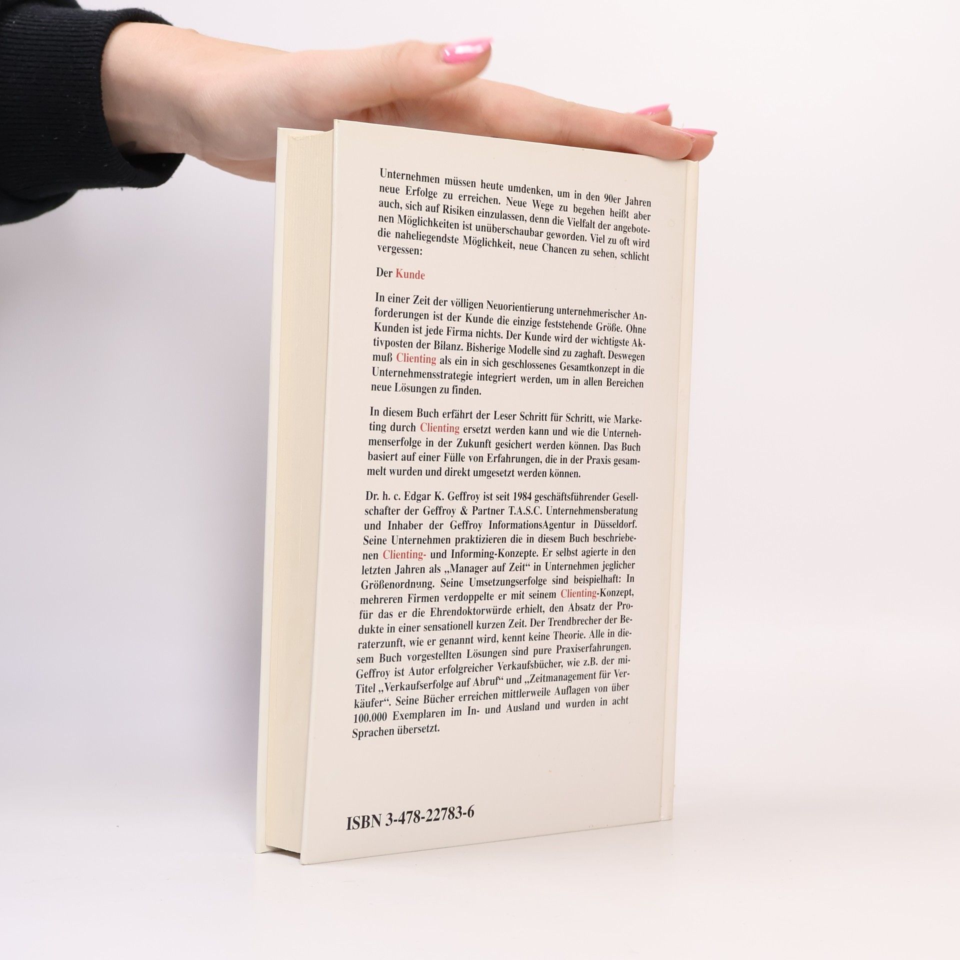 Wer ist Kunde von heute? Werden wir alle zu Schnäppchenjägern? Ein Trend ist mehr als offensichtlich: Alles wird immer billiger. Alle achten nur noch auf den Preis. Wie können Verkäufer darauf reagieren? Erfolgreich ist eine äußerst flexible Kundenstrategie – ohne diese kann kein Unternehmen überleben. Daher setzt dieses Buch auf Sie, die Leser: Von Ihnen müssen die entscheidenden Impulse ausgehen! Das Einzige, was stört, ist der Kunde stellt Ihnen Clienting vor die Lehre vom Kunden zu Partnern und Mitarbeiter zu engagierten Mitunternehmern. Im Mittelpunkt stehen nicht allein der Profit, sondern gute Beziehungen zu Ihren Kunden. Viele Menschen und Firmen, die Clienting umgesetzt haben, sind heute Marktführer auf Ihrem Gebiet. Entwickeln auch Sie ein neues Kundenverständnis!