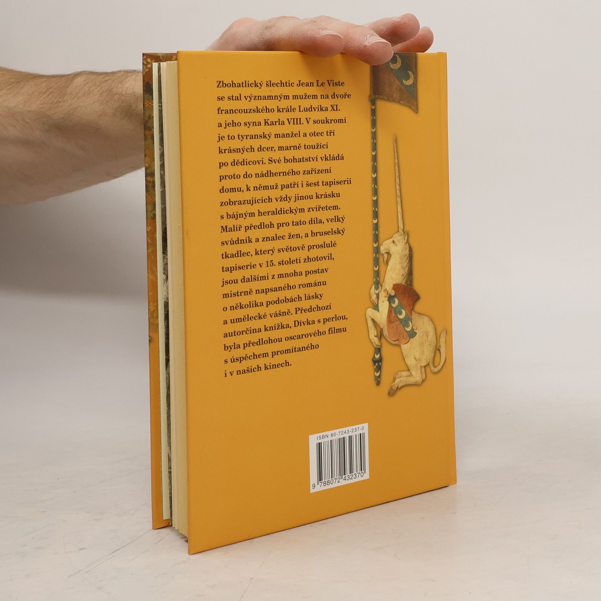 Šlechtic Jean de Viste se stal v 15. stol. významným mužem na dvoře francouzského krále Ludvíka XI. Své bohatství vkládá do nádherného zařízení domu, k němuž patří i šest tapiserií zobrazujících vždy jinou krásku s bájným zvířetem. Malíř předloh pro tato díla, velký svůdník a znalec žen, a bruselský tkadlec těchto světově proslulých gobelínů jsou další z mnoha postav mistrně napsaného románu. Předchozí autorčina knížka, Dívka s perlou, byla předlohou oscarového filmu s úspěchem promítaného i v našich kinech.