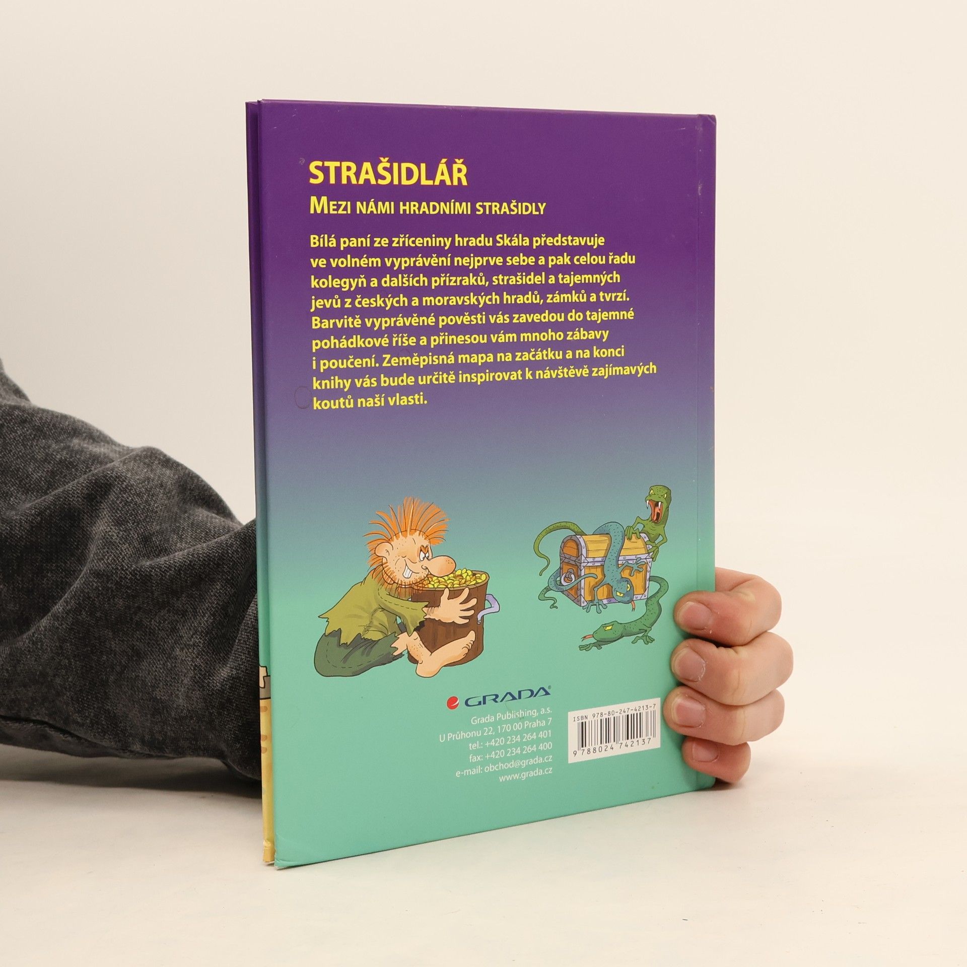 Bílá paní ze zříceniny hradu Skála představuje ve volném vyprávění nejprve sebe a pak celou řadu kolegyň a dalších přízraků, strašidel a tajemných jevů z českých a moravských hradů, zámků, tvrzí. Barvitě vyprávěné pověsti vás zavedou do tajemné pohádkové říše a přinesou vám mnoho zábavy i poučení. Zeměpisná mapa na začátku a na konci knihy vás bude určitě inspirovat k návštěvě zajímavých koutů naší vlasti.