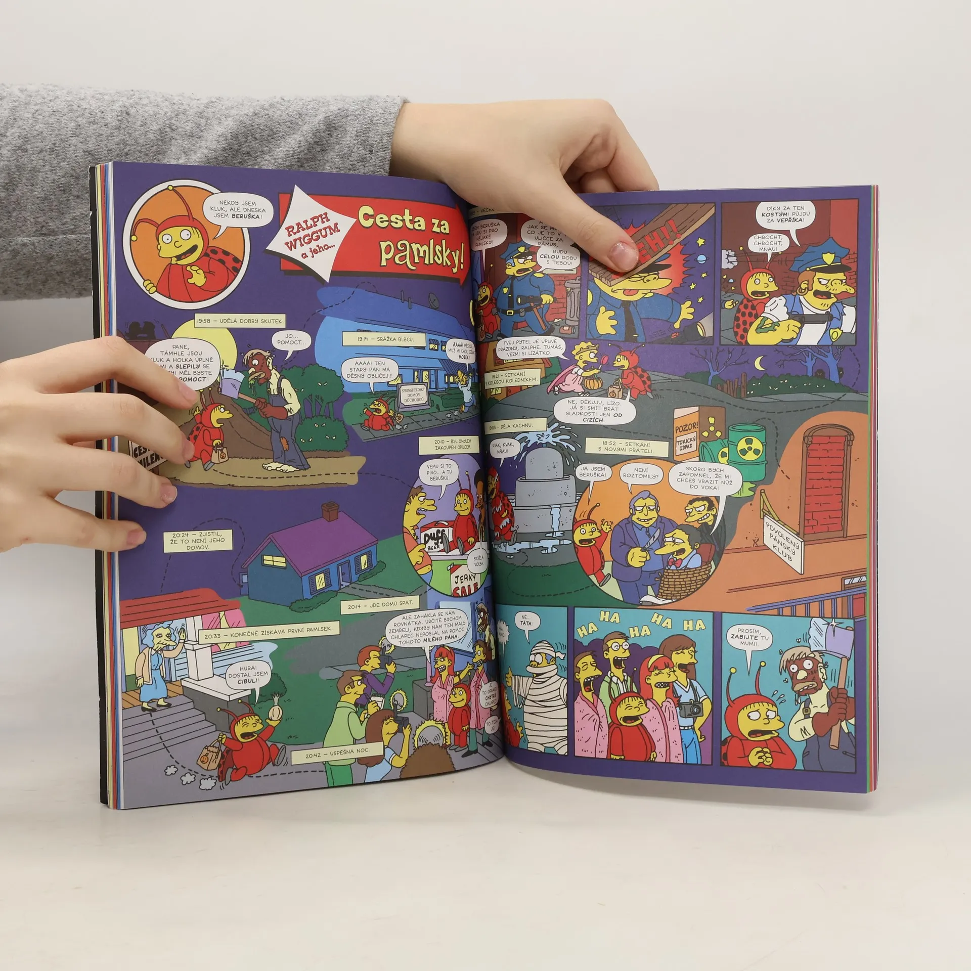 Další kniha ze světa nejslavnější žluté rodiny! Tenhle díl je z řady, začínající Nervy v kýblu, z řady, která se od klasických Simpsonů liší nejen komediálně-hororovým nádechem, ale i tím, že se na něm podílí lidé mimo simpsonovskou stáj, obvykle komiksové celebrity. V tomhle případě do Springfieldu zavítal Geof Darrow (Hard Boiled), Sergio Aragones (Groo), Jill Thompsonová (Beast of Burden), Doug TenNapel (Neverhood, Earthworm Jim), Chuck Dixon (Storming Paradise), Peter Kuper (Proměna) a další!