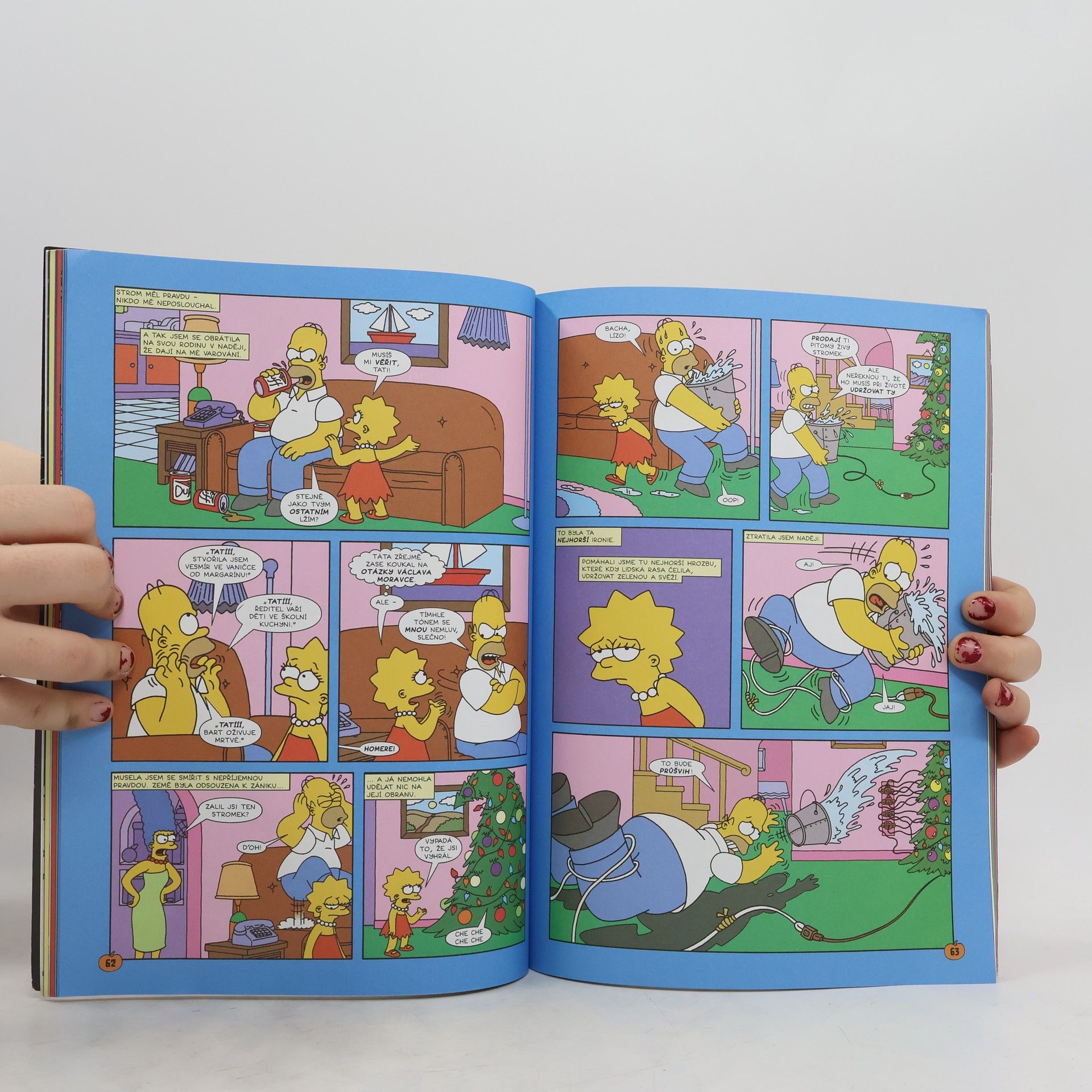 Další kniha ze světa nejslavnější žluté rodiny! Tenhle díl je z řady, začínající Nervy v kýblu, z řady, která se od klasických Simpsonů liší nejen komediálně-hororovým nádechem, ale i tím, že se na něm podílí lidé mimo simpsonovskou stáj, obvykle komiksové celebrity. V tomhle případě do Springfieldu zavítal Geof Darrow (Hard Boiled), Sergio Aragones (Groo), Jill Thompsonová (Beast of Burden), Doug TenNapel (Neverhood, Earthworm Jim), Chuck Dixon (Storming Paradise), Peter Kuper (Proměna) a další!