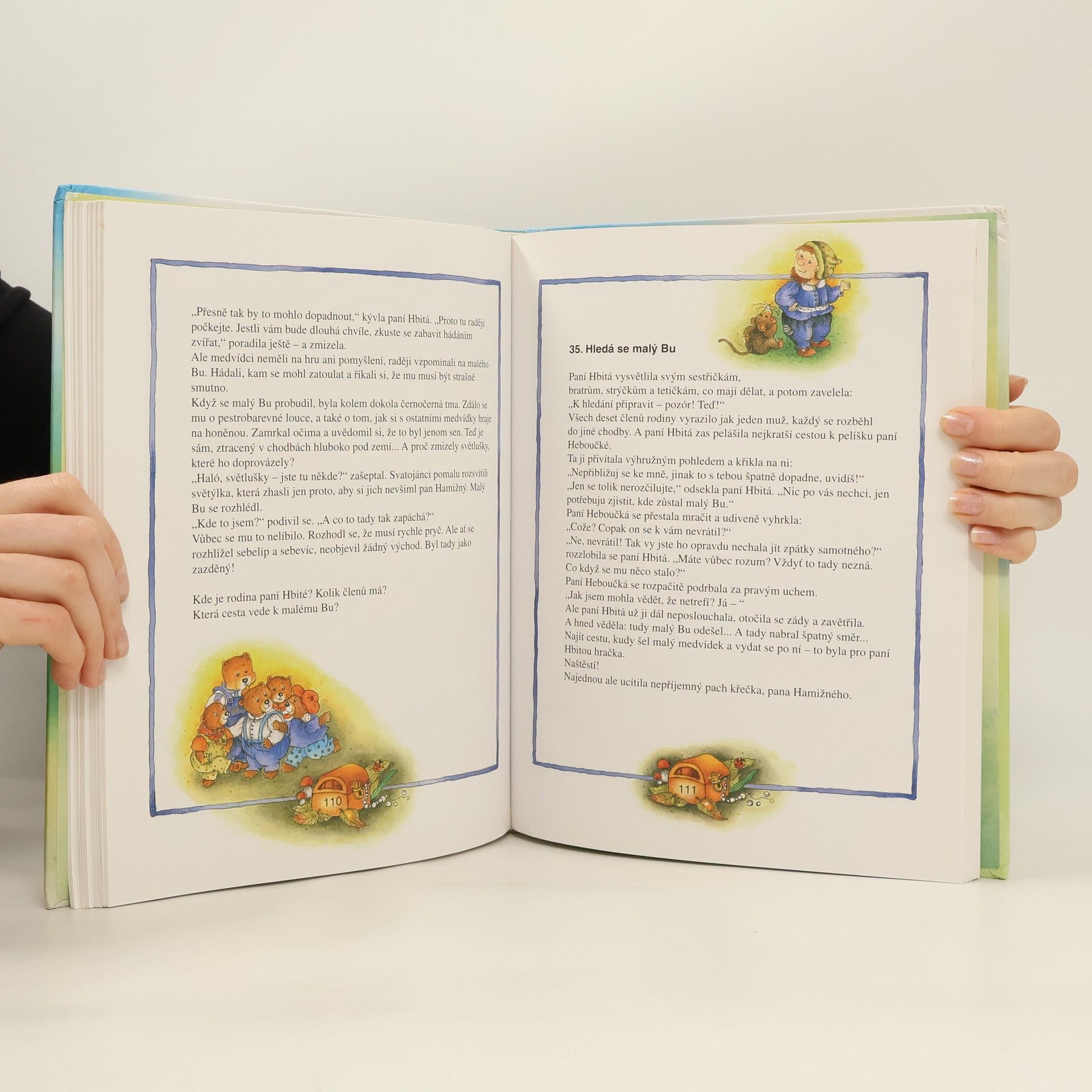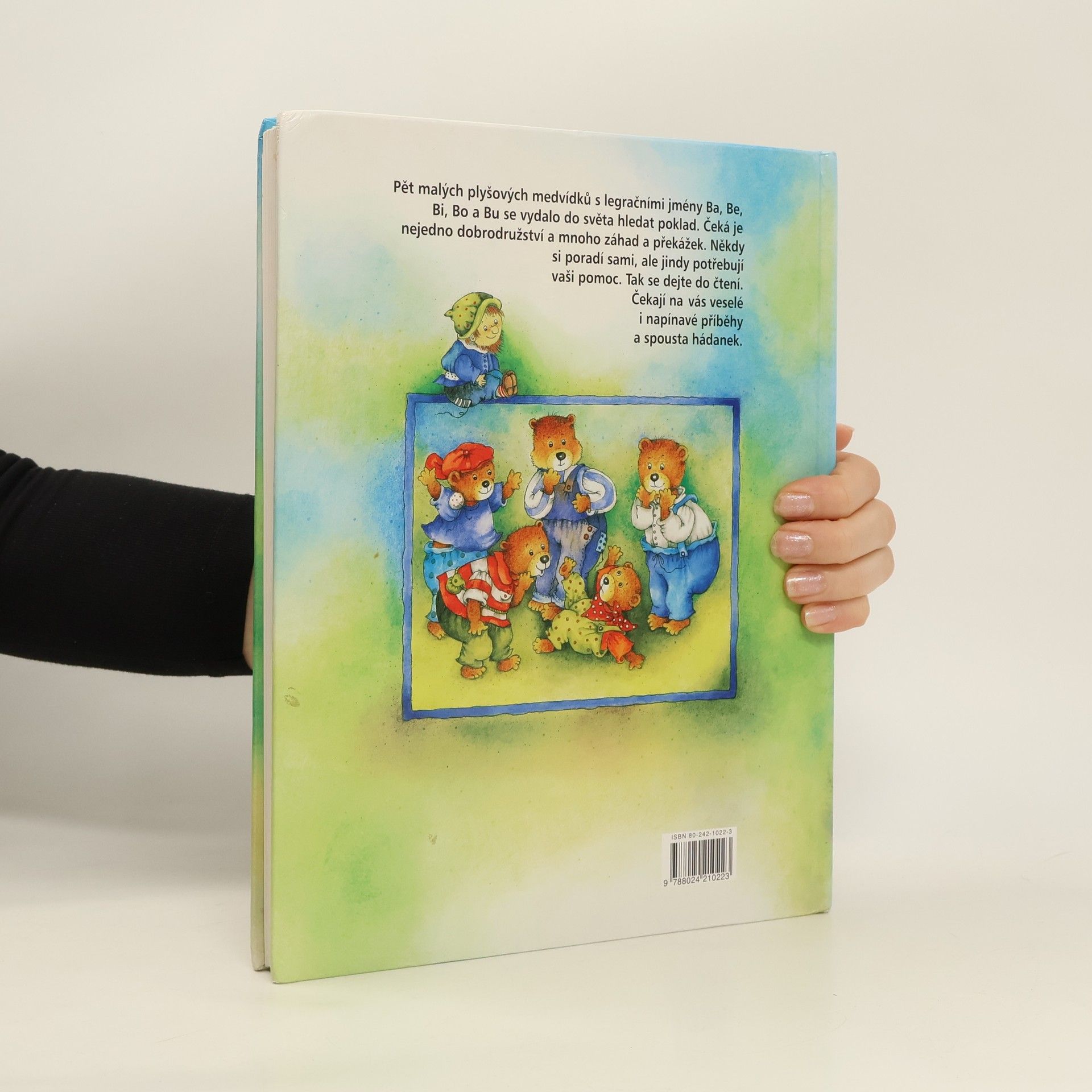 Pět malých plyšových medvídků s legračními jmény Ba, Be, Bi, Bo a Bu se vydalo do světa hledat poklad. Čeká je nejedno dobrodružství a mnoho záhad a překážek. Někdy si poradí sami, ale jindy potřebují vaši pomoc. Tak se dejte do čtení. Čekají vás veselé i napínavé příběhy a spousta hádanek.