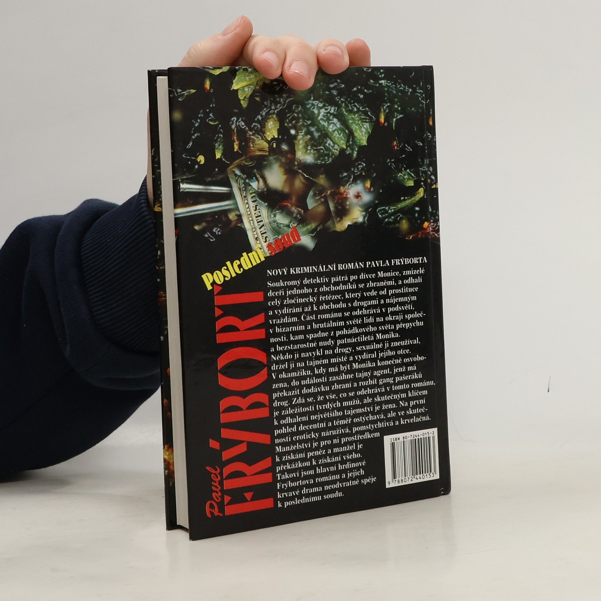 Soukromý detektiv pátrá po dívce Monice, zmizelé dceři jednoho z obchodníků se zbraněmi, a odhalí celý zločinecký řetězec, který vede od prostituce a vydírání až k obchodu s drogami a nájemným vraždám. Část románu se odehrává v podsvětí, v bizarním a brutálním světě lidí na okraji společnosti, kam spadne z pohádkového světa přepychu a bezstarostné nudy patnáctiletá Monika. Někdo ji navykl na drogy, sexuálně ji zneužíval, držel ji na tajném místě a vydíral jejího otce. V okamžiku, kdy má být Monika konečně osvobozena, do událostí zasáhne tajný agent, jenž má překazit dodávku zbraní a rozbít gang pašeráků drog. Zdá se, že vše, co se odehrává v tomto románu, je záležitostí tvrdých mužů, ale skutečným klíčem k odhalení největšího tajemství je žena. Na první pohled decentní a téměř ostýchavá, ale ve skutečnosti eroticky náruživá, pomstychtivá a krvelačná. Manželství je pro ni prostředkem k získání peněz a manžel je překážkou k získání všeho. Takoví jsou hlavní hrdinové Frýbortova románu a jejich krvavé drama neodvratně spěje k poslední soudu.