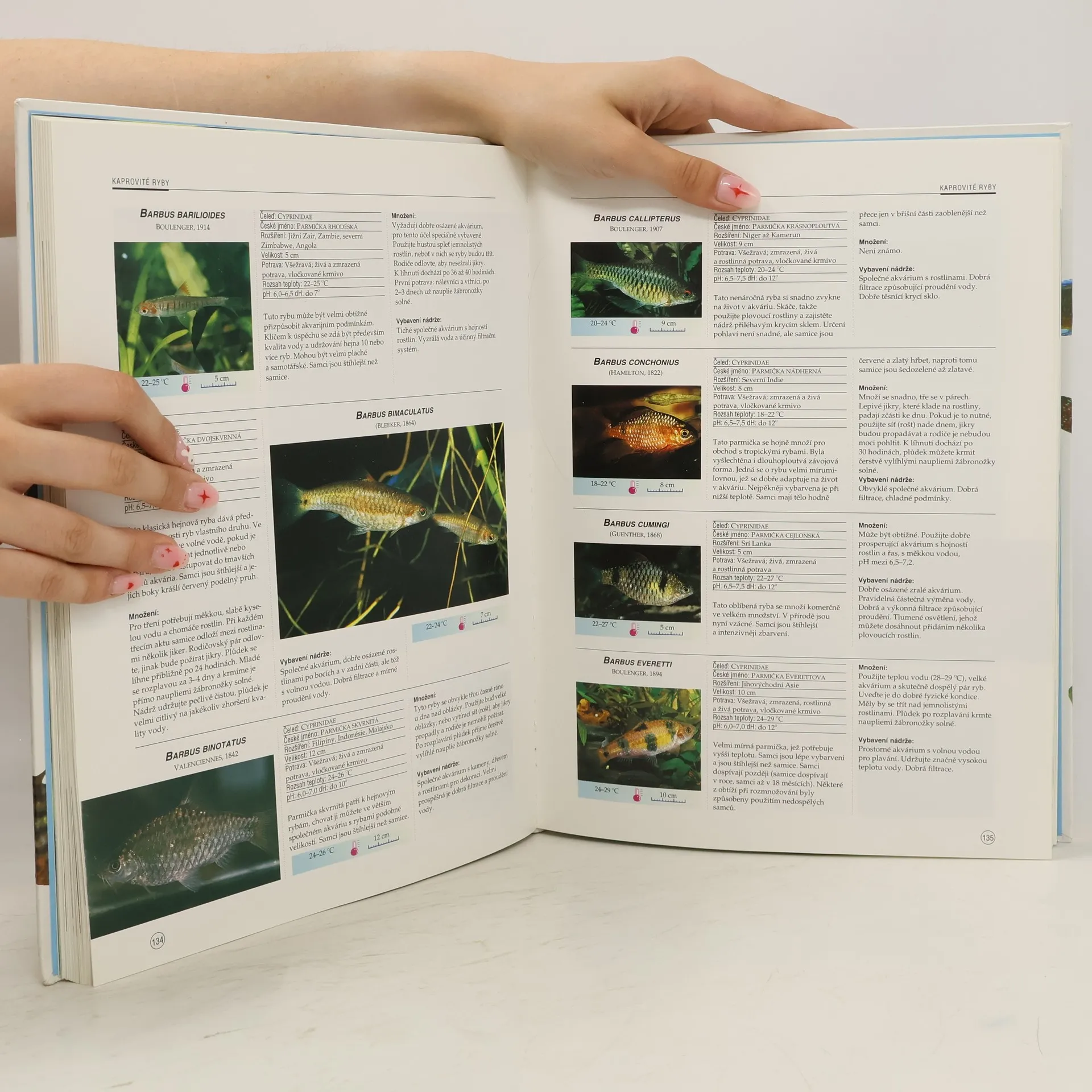 Průvodce světem exotických, sladkovodních i mořských druhů akvarijních ryb. Ke každé rybě je odstavec textu s vlastními zkušenostmi autorky. cca 1000 ryb