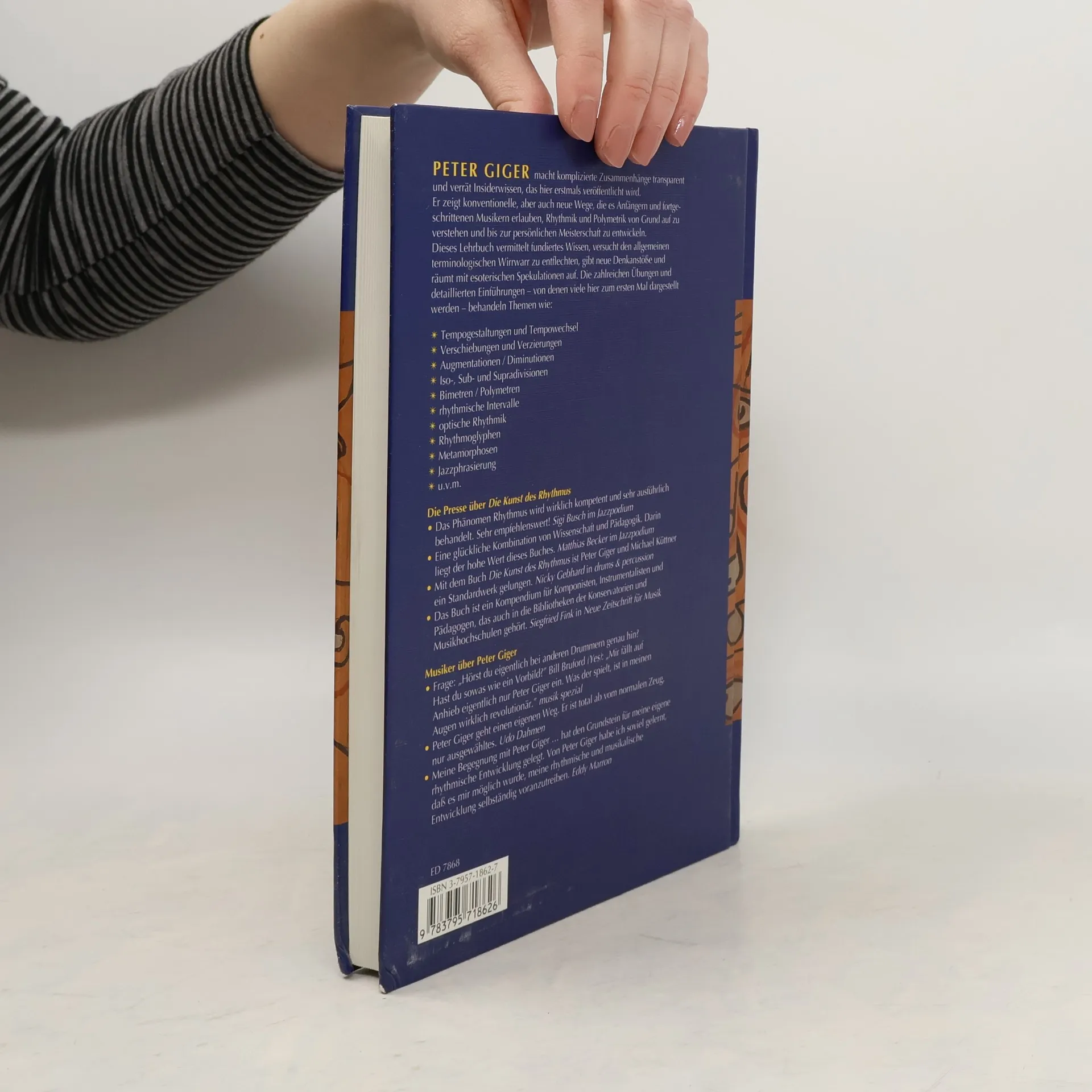 Peter Giger macht komplizierte Zusammenhänge transparent und verrät Insiderwissen, das hier erstmals veröffentlicht wird. Er zeigt konventionelle, aber auch neue Wege, die es Anfängern und fortgeschrittenen Musikern erlauben, Rhythmik und Polymetrik von Grund auf zu verstehen und bis zur persönlichen Meisterschaft zu entwickeln. Dieses Lehrbuch vermittelt fundiertes Wissen, versucht den allgemeinen terminologischen Wirrwarr zu entflechten, gibt neue Denkanstöße und räumt mit esoterischen Spekulationen auf. Die zahlreichen Übungen und detaillierten Einführungen - von denen viele hier zum ersten Mal dargestellt werden - behandeln Themen wie: - Tempogestaltungen und Tempowechsel - Verschiebungen und Verzierungen - Augmentationen / Diminutionen - Iso-, Sub- und Supradivisionen - Bimetren / Polymetren - rhythmische Intervalle - optische Rhythmik - Rhythmoglyphen - Metamorphosen - Jazzphrasierung - u. v. m.