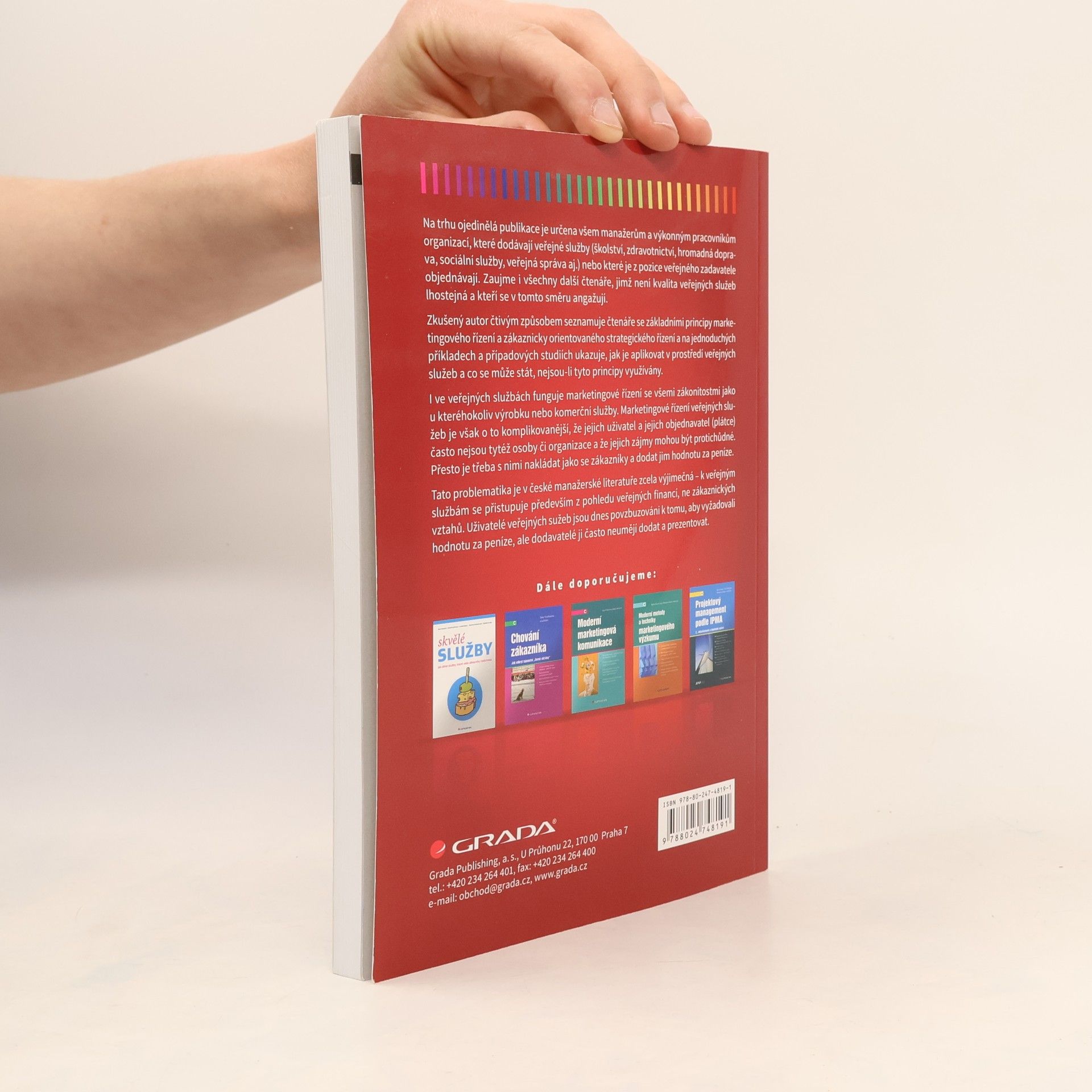 Na trhu ojedinělá publikace je určena všem manažerům a výkonným pracovníkům organizací, které dodávají veřejné služby (školství, zdravotnictví, hromadná doprava, sociální služby, veřejná správa aj.) nebo které je z pozice veřejného zadavatele objednávají. Zaujme i všechny další čtenáře, jimž není kvalita veřejných služeb lhostejná a kteří se v tomto směru angažují. Zkušený autor čtivým způsobem seznamuje čtenáře se základními principy marketingového řízení a zákaznicky orientovaného strategického řízení a na jednoduchých příkladech a případových studiích ukazuje, jak je aplikovat v prostředí veřejných služeb a co se může stát, nejsou-li tyto principy využívány. I ve veřejných službách funguje marketingové řízení se všemi zákonitostmi jako u kteréhokoliv výrobku nebo komerční služby. Marketingové řízení veřejných služeb je však o to komplikovanější, že jejich uživatel a jejich objednavatel (plátce) často nejsou tytéž osoby či organizace a že jejich zájmy mohou být protichůdné. Přesto je třeba s nimi nakládat jako se zákazníky a dodat jim hodnotu za peníze. Tato problematika je v české manažerské literatuře zcela výjimečná – k veřejným službám se přistupuje především z pohledu veřejných financí, ne zákaznických vztahů. Uživatelé veřejných sužeb jsou dnes povzbuzováni k tomu, aby vyžadovali hodnotu za peníze, ale dodavatelé ji často neumějí dodat a prezentovat.