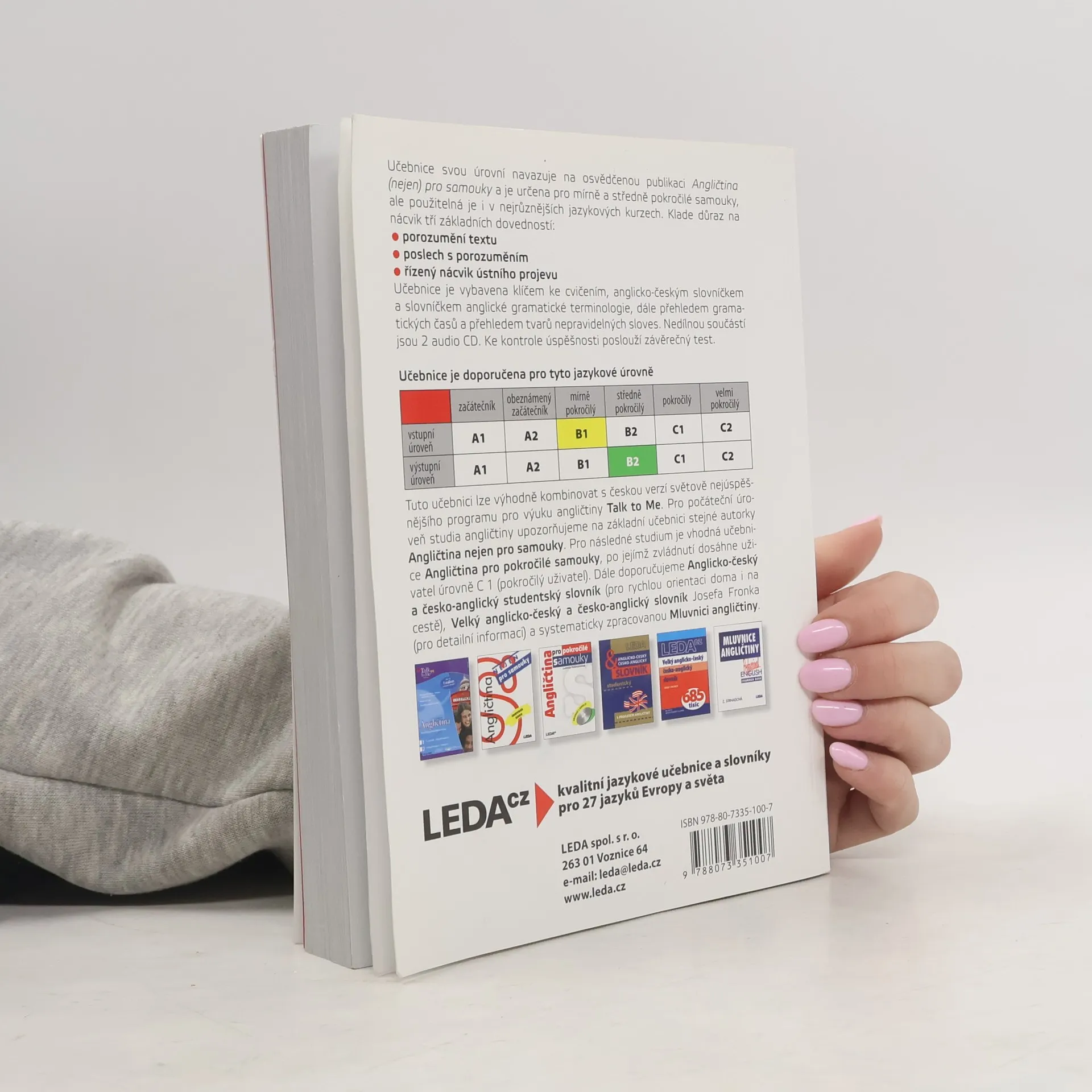 Učebnice, která svou úrovní navazuje na osvědčenou publikaci Angličtina (nejen) pro samouky, je určena nejen samoukům, ale je použitelná i v nejrůznějších anglických kurzech. Učebnice je zaměřena na nácvik tří základních dovedností – porozumění textu, poslech s porozuměním a řízený nácvik ústního projevu na takové úrovni, která uživatelům po zvládnutí učiva zaručí dosažení stupně pokročilosti B2 podle doporučení Rady Evropy. Součástí učebnice je klíč ke cvičením, anglicko-český slovníček a slovníček anglické gramatické terminologie.