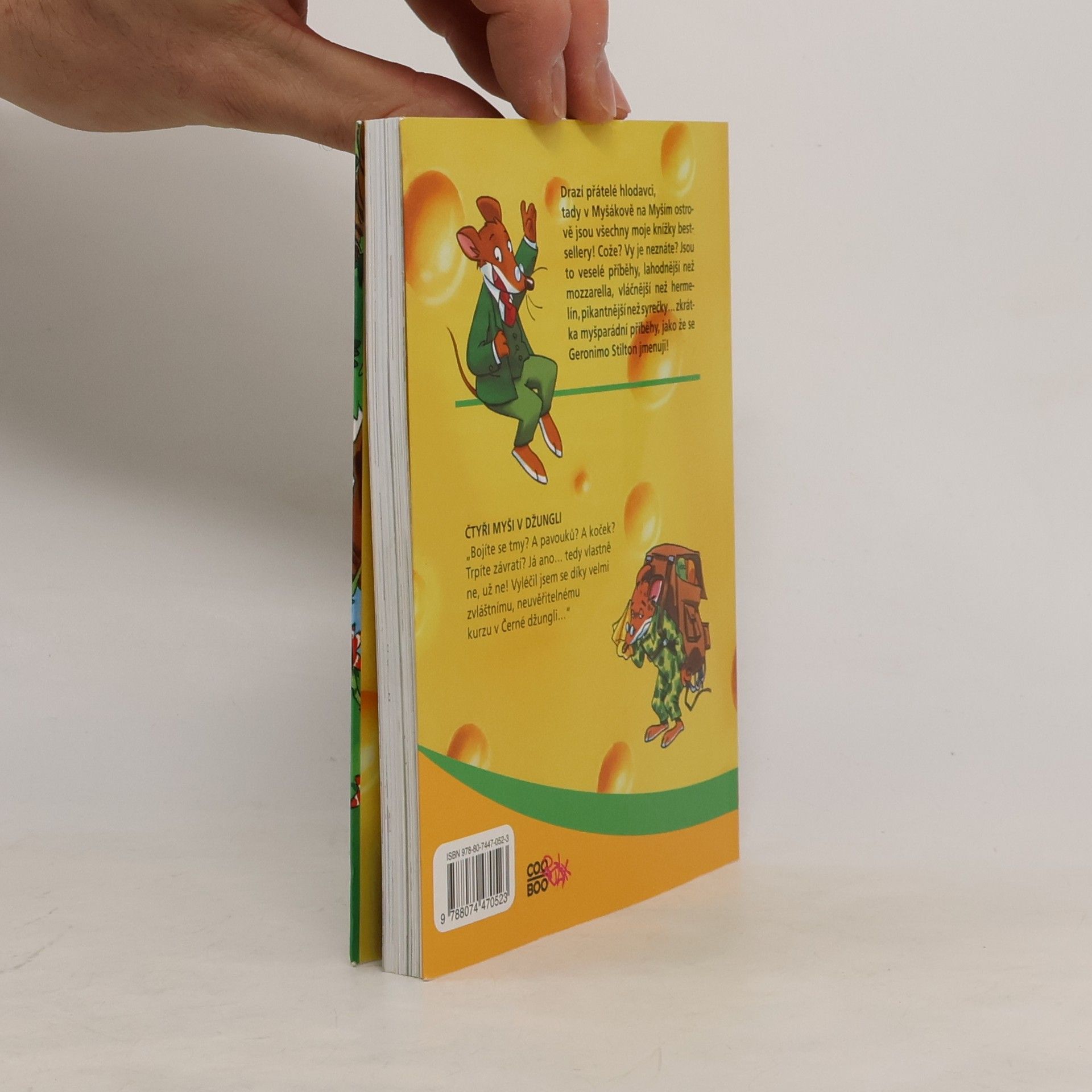 Vážení přátelé hlodavci, čekají vás další MYŠPARÁDNÍ DOBRODRUŽSTVÍ Geronima Stiltona. Jak již víte z prvního dílu, Geronimo je velice výjimečný myšák, který žije v Myšákově na podivuhodném Myším ostrově a ve volném čase sbírá historické kůrky od parmazánu z 18. století, ale hlavně strašně rád píše knihy, v nichž vypráví o svých příhodách. Tentokrát však na sbírání kůrek nebude mít ani vteřinku, ocitne se nečekaně v Černé džungli a bude muset bojovat o holý život. V příběhu se to hemží pavouky, jedovatými hady a nebezpečnými škorpióny!