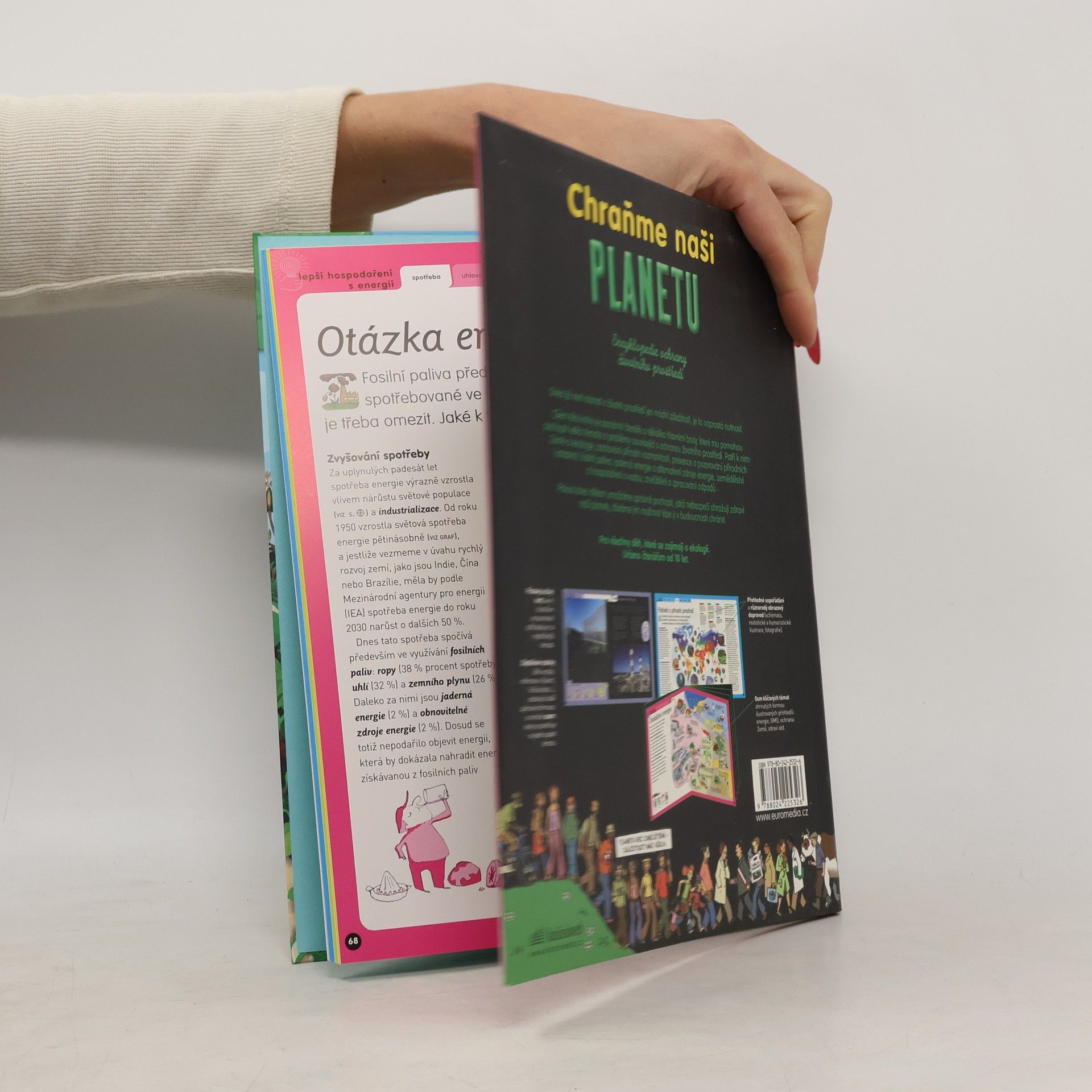 Přehledná, netradiční a poutavou formou zpracovaná encyklopedie životního prostředí seznamuje mladé čtenáře v 6 hlavních kapitolách s tématy vzniku a vývoje planety Země, ochrany rozmanitosti živočišných a rostlinných druhů, ochrany před přírodními katastrofami, hospodařením s energiemi, ochrany přírodních zdrojů a boje proti znečišťování planety. Kniha nezbytná pro každého, kdo chce, aby nová generace přistupovala zodpovědně k životnímu prostředí a ochraně přírody. (encyklopedie ochrany životního prostředí)