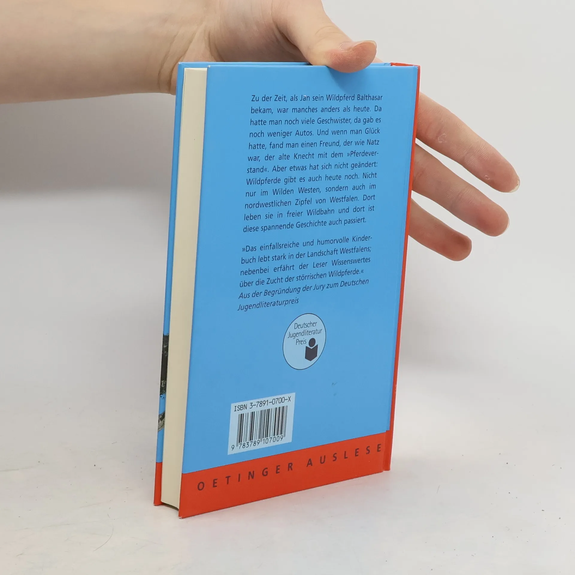 Zu der Zeit, als Jan sein Wildpferd Balthasar bekam, war manches anders als heute. Da hatte man noch viele Geschwister, da gab es noch weniger Autos. Und wenn man Glück hatte, fand man einen Freund wie Natz, den alten Knecht mit dem 'Pferdeverstand'. Aber etwas hat sich nicht geändert seit damals: Wildpferde gibt es auch heute noch. Nicht nur im Wilden Westen, sondern auch im nordwestlichen Zipfel von Westfalen. Dort leben sie in freier Wildbahn und dort ist diese Geschichte auch passiert. 'Das einfallsreiche und humorvolle Kinderbuch lebt stark in der Landschaft Westfalens; nebenbei erfährt der Leser Wissenswertes über die Zucht der störrischen Wildpferde.' Aus der Begründung der Jury zum Deutschen Jugendliteraturpreis