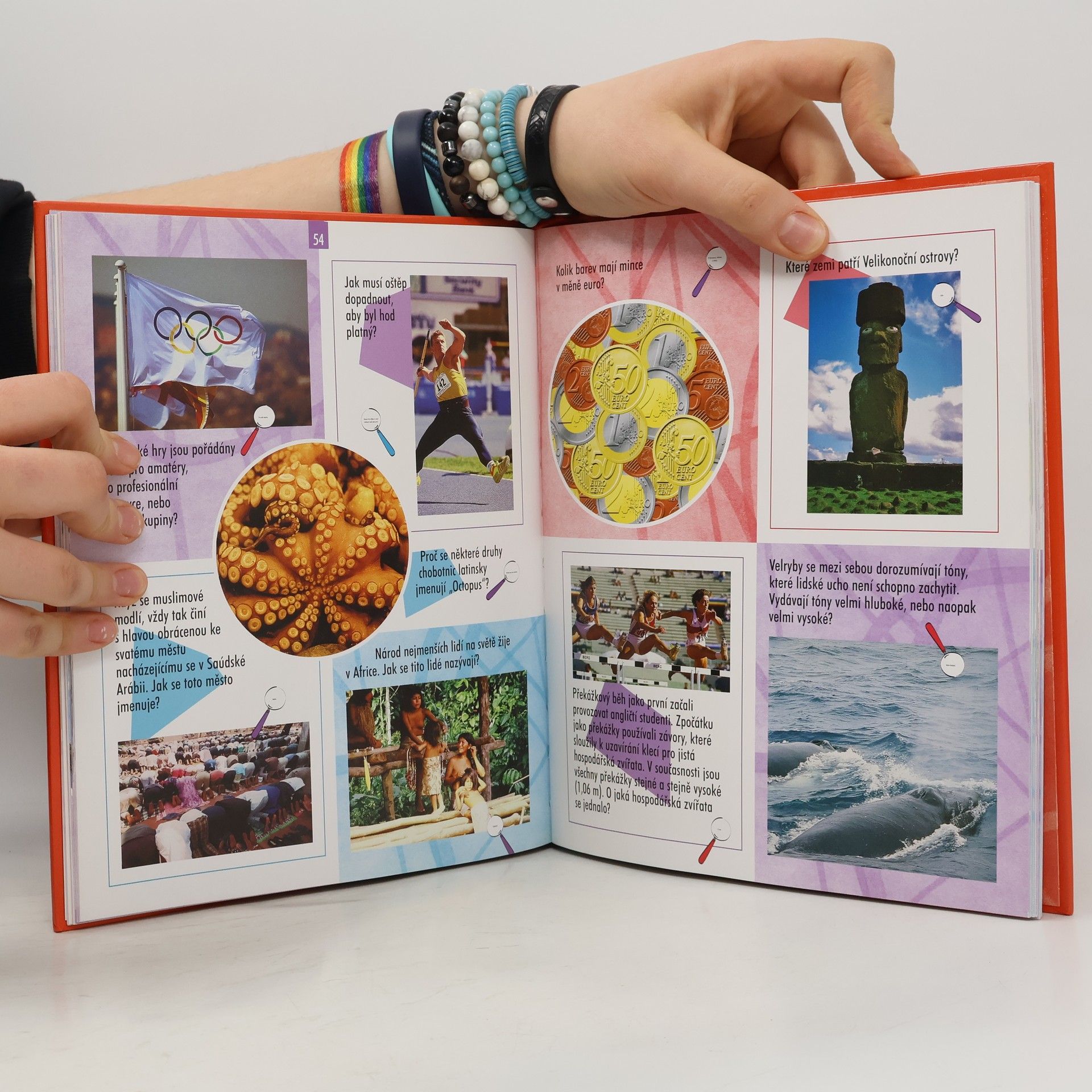 Pokuste se odpovědět na otázky z nejrůznějších oborů lidské činnosti. Ověřte si své znalosti z oblasti historie, techniky, světa zvířat i rostlin, sportu aj. Pokud odpověď neznáte, nemusíte ji složitě hledat! Naleznete ji přímo pod otázkou. Je však vytištěna tak malým písmem, že ji lze přečíst jen pomocí speciální lupy, která je součástí každého výtisku.