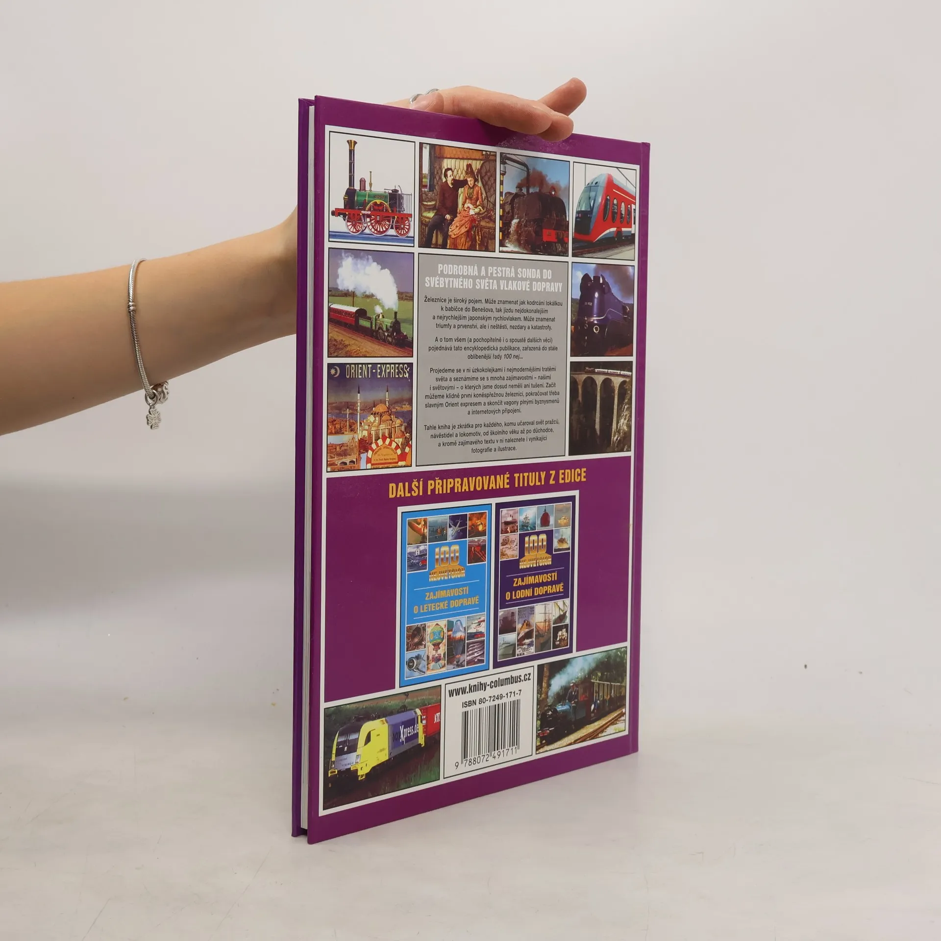 Podrobná a pestrá sonda do svébytného světa vlakové dopravy. Železnice je široký pojem. Může znamenat jak kodrcání lokálkou k babičce do Benešova, tak jízdu nejdokonalejším a nejrychlejším japonským rychlovlakem. Může znamenat triumfy a prvenství, ale i neštěstí, nezdary a katastrofy. A o tom všem (a pochopitelně i o spoustě dalších věcí) pojednává tato encyklopedická publikace, zařazená do stále oblíbenější řady 100 nej... Projedete se v ní úzkokolejkami i nejmodernějšími tratěmi světa a seznámíte se s mnoha zajímavostmi – našimi i světovými - o kterých jste dosud neměli ani tušení. Začít můžete klidně první koněspřežnou železnicí, pokračovat třeba slavným Orient expresem a skončit vagony plnými byznysmenů a internetových připojení. Tato kniha je zkrátka pro každého, komu učaroval svět pražců, návěstidel a lokomotiv, od školního věku až po důchodce, a kromě zajímavého textu v ni naleznete i vynikající fotografie a ilustrace.