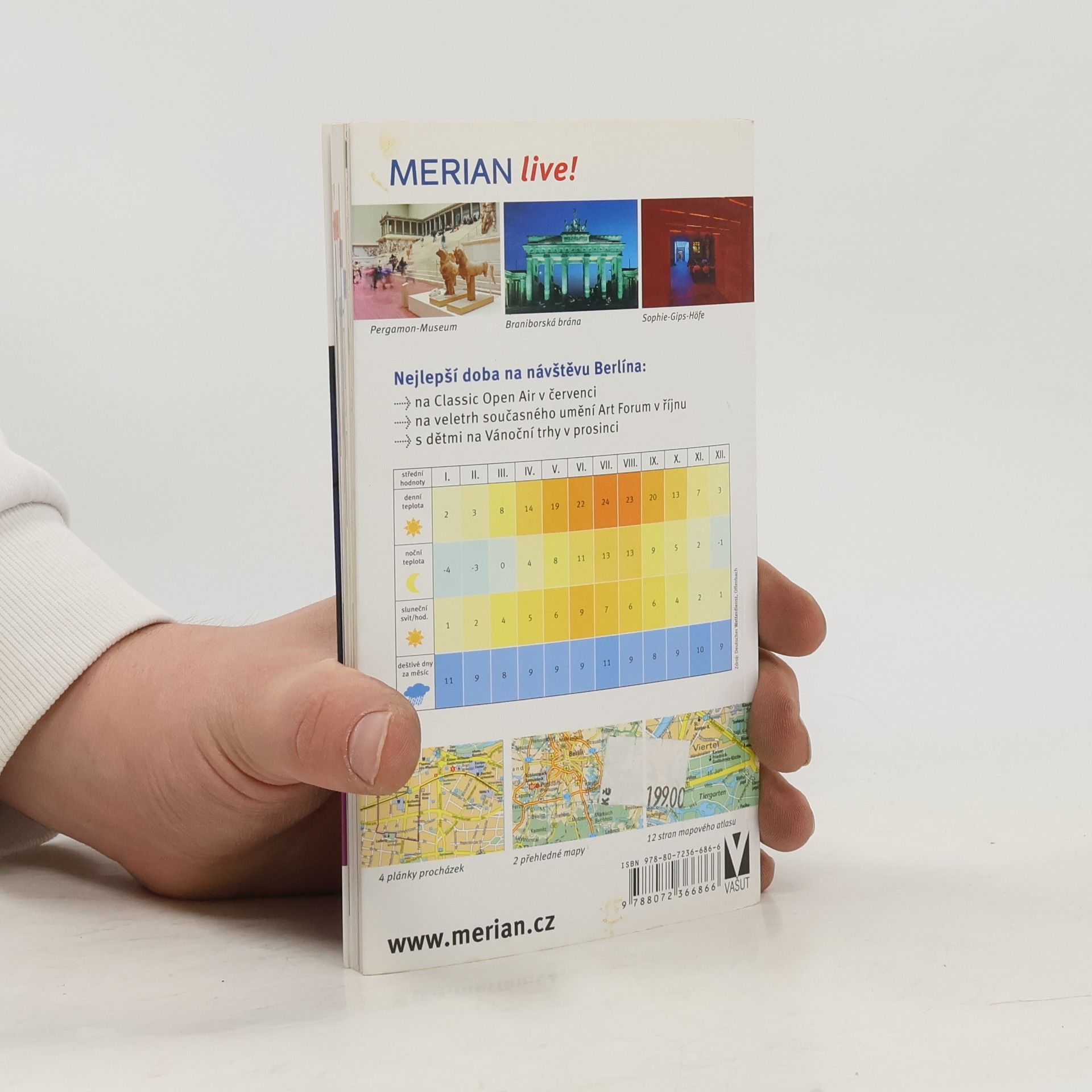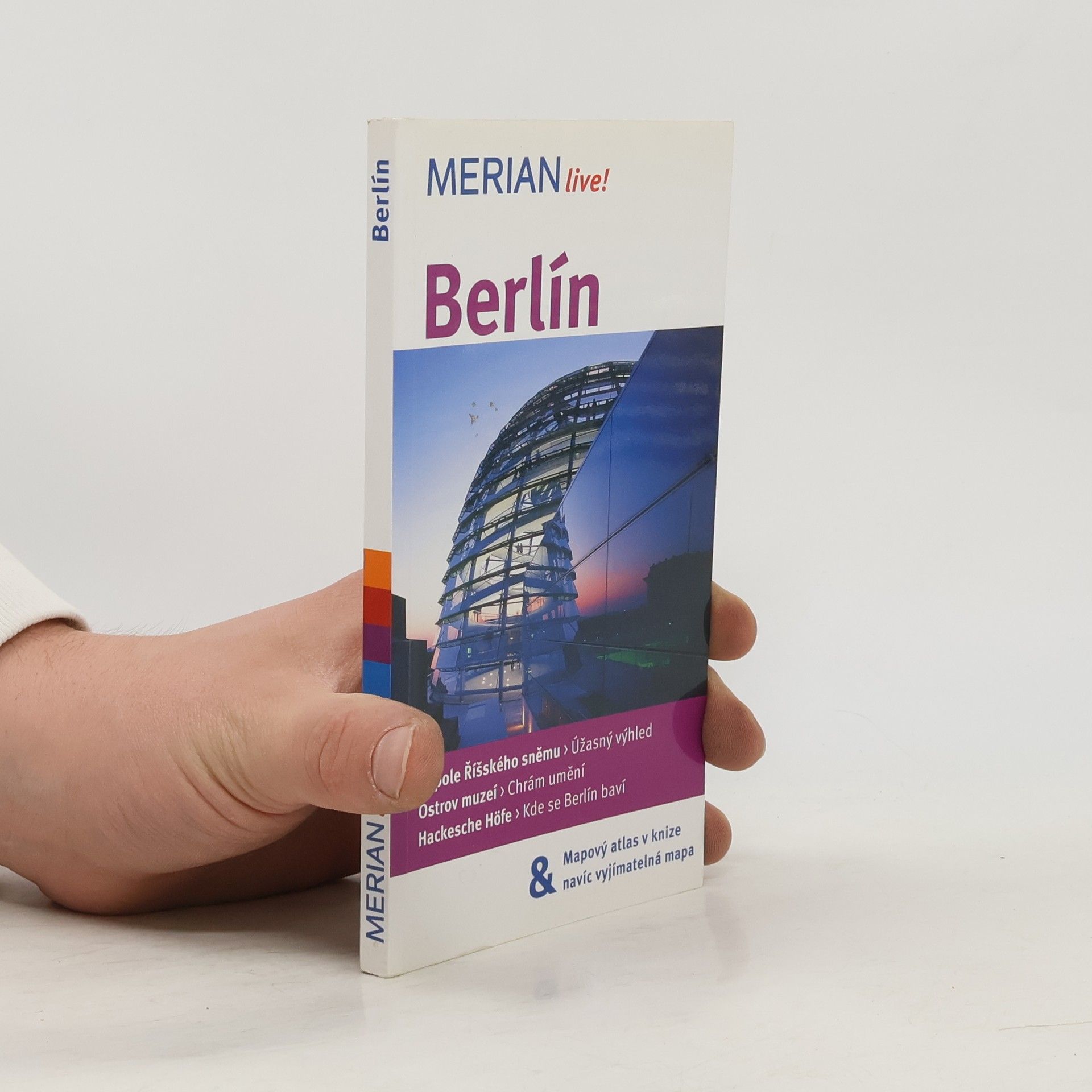 Česká mutace německé ediční řady průvodců "Merian" seznamuje s nejvýznamnějšími kulturními, uměleckými a přírodními památkami Berlína a jeho okolí. Cestovní příručka v úvodu představuje stavební památky, novou výstavbu centra města, zajímavá muzea a galerie. Přináší obecné informace o vstupu do země, radí jak cestovat, jak se ubytovat a kde jíst. Doporučuje vhodné turistické trasy, procházky a výlety s praktickým popisem cesty po městě i okolí. Významné pamětihodnosti města, zábavní parky, kavárny, významná muzea jsou popisovány podle abecedy včetně cílů v okolí (Potsdam, Berlínská jezera, Märkische Schweiz). Průvodce obsahuje i důležité informace pro turisty, mapky, plánky, fotografie, stručné dějiny města, rejstřík, slovníček, aktualizované ceny a otvírací doby.