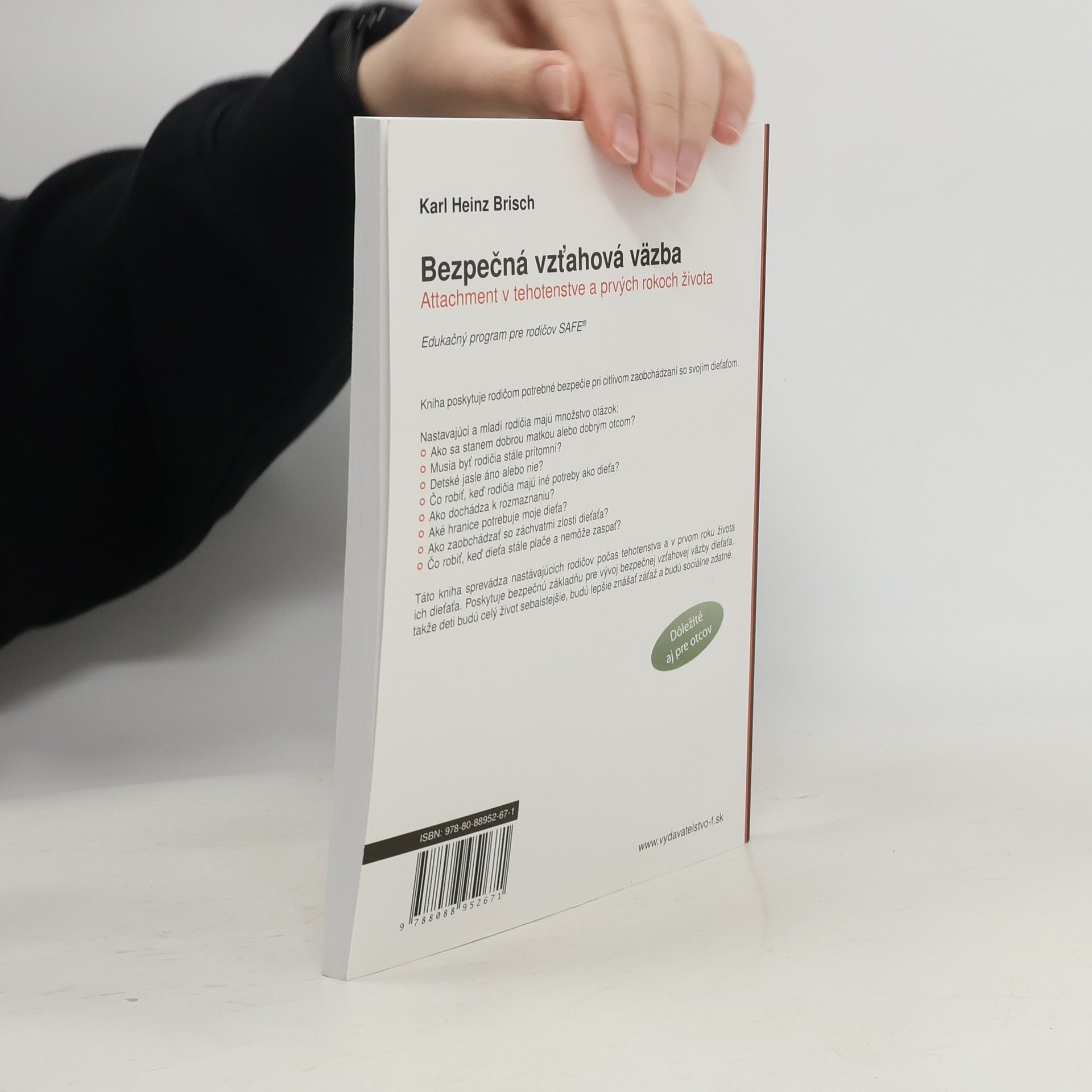 Kniha poskytuje rodičom potrebné bezpečie pri citlivom zaobchádzaní so svojím dieťaťom. Nastávajúci a mladí rodičia majú množstvo otázok: Ako sa stanem dobrou matkou alebo dobrým otcom? Musia byť dobrí rodičia stále prítomní? Detské jasle áno alebo nie? Čo robiť, keď rodičia majú iné potreby ako dieťa? Ako predchádzať rozmaznaniu? Aké hranice potrebuje moje dieťa? Ako zaobchádzať so záchvatmi zlosti dieťaťa? Čo robiť, keď dieťa stále plače a nemôže zaspať? Táto kniha sprevádza nastávajúcich rodičov počas tehotenstva a v prvom roku života ich dieťaťa. Poskytuje bezpečnú základňu pre vývoj bezpečnej vzťahovej väzby dieťaťa, takže deti budú celý život sebaistejši, budú lepšie znášať záťaž a budú sociálen zdatné.