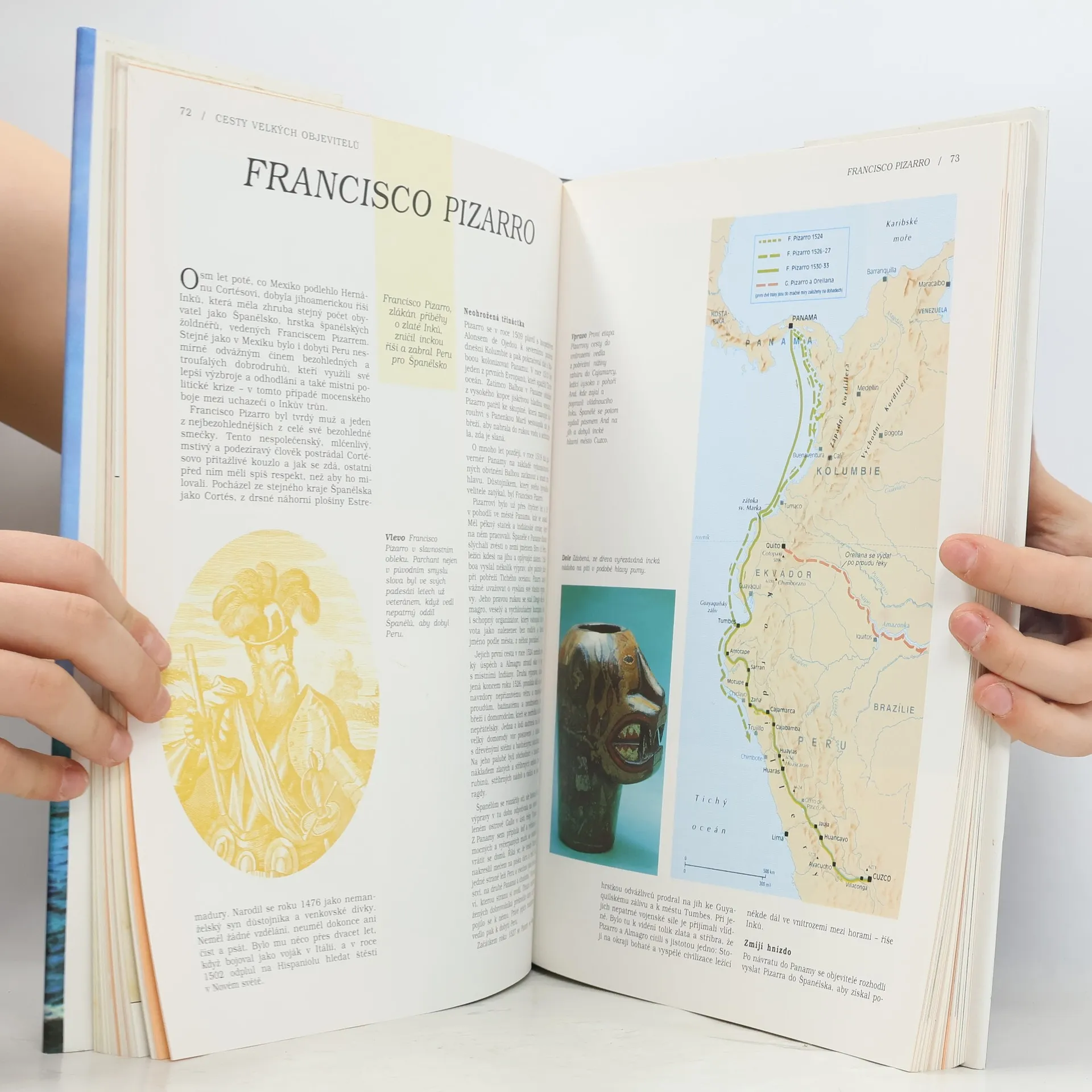 Kdo je to vlastně objevitel? Co některé lidi žene do neznámých končin? Určitě je to odvaha, cíl, neúnavná energie a výjimečné vůdcovské vlastnosti často spojené s jistou bezohledností, sobectvím, lehkomyslností a velkou dávkou štěstí. Objevitelé uvedení v této knize však mají společné tyto vlastnosti: nesmírnou zvídavost a přesvědčení o svém poslání. Tato kniha sleduje od dobyvatelské cesty Alexandra Makedonského a jeho armády po Asii ve 4. stol. př.n.l. až po první kroky na povrchu Měsíce učiněné Armstrongem a Aldrinem v roce 1969 postup těch, kteří se nespokojili s obzory známého světa, ale byli rozhodnuti prozkoumat, co leží za nimi. Kniha líčí v chronologickém pořadí příběhy třiceti nejslavnějších objevitelů v dějinách. Každá cesta je zachycena na speciální mapě a je ilustrována fotografiemi, obrázky, rytinami a kresbami jak ze současnosti tak z dřívějších dob. Krátké životopisné poznámky upozorňují na nejdůležitější mezníky života všech objevitelů. Citáty ze zápisků objevitelů a jejich společníků nám poodkrývají jejich myšlenky a pocity, jejich cíle a zklamání. Časová tabulka zasazuje všechny objevitele do historického kontextu a poskytuje přehledný rámec světa objevů.