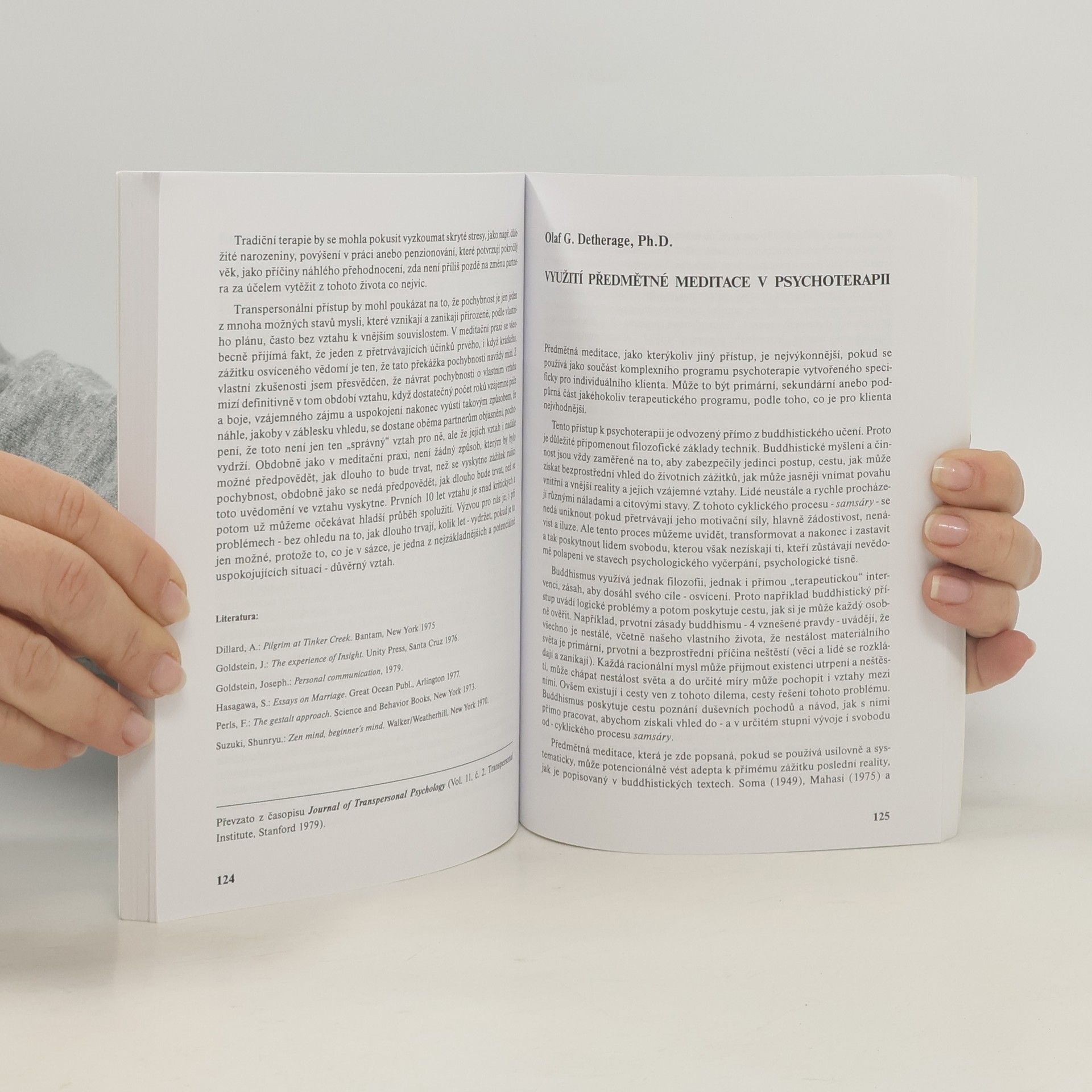 Sensei S. Graef: PSYCHOTRONICKÉ JEVY Z POHLEDU ZEN-BUDDHISMU Kora & Ohara: MORITOVA TERAPIE C.Kane: MORITOVA TERAPIE A NAIKON Mistr Dešimaru: ZAZEN A MEDICÍNA Dr.D. Burns: BUDDHISTICKÁ MEDITACE A HLUBINNÁ PSYCHOLOGIE Dr.Hirai: LÉČBA ZENOVOU MEDITACÍ McDonaldová: EMOCE V KONTEXTU CVIČENÍ S. Boorstein: PROBLÉMOVÉ VZTAHY: TRANSPERSONÁLNÍ A PSYCHOANALYTICKÝ PRÍSTUP O. Detherage: PŘEDMĚTNÁ MEDITACE AKO PSYCHOTERAPIE.