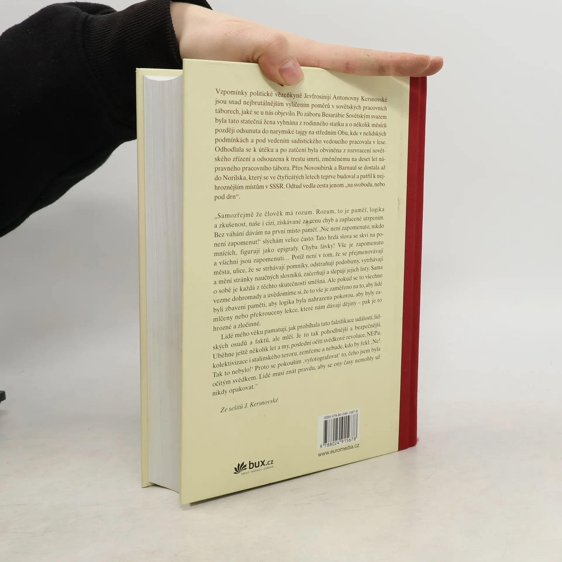 Vzpomínky politické vězeňkyně Jefrosiňji Antonovny Kersnovské jsou snad nejbrutálnějším vylíčením poměrů v sovětských pracovních táborech, jaké se u nás objevilo. Po záboru Besarábie Sovětským svazem, byla tato statečná žena vyhnána z rodinného statku a o několik měsíců později odsunuta do Narynské tajgy na horním Obu, kde v nelidských podmínkách a pod vedením sadistického vedoucího pracovala v lese. Odhodlala se k útěku a po opětovném zatčení byla obviněna ze špionáže a rozvracení sovětského zřízení a odsouzena k trestu smrti, změněnému na deset let nápravného pracovního tábora. Přes Novosibirsk a Barnaul se dostala až do Norilska, který se ve čtyřicátých letech teprve budoval a patřil k nejhroznějším místům v SSSR. Odtud vedla cesta jenom „na svobodu, nebo pod drn.“ Své vzpomínky autorka doprovodila sedmi sty vlastnoručními ilustracemi, v tomto vydání je zařazen výběr 284 ilustrací. www.kosmas.cz