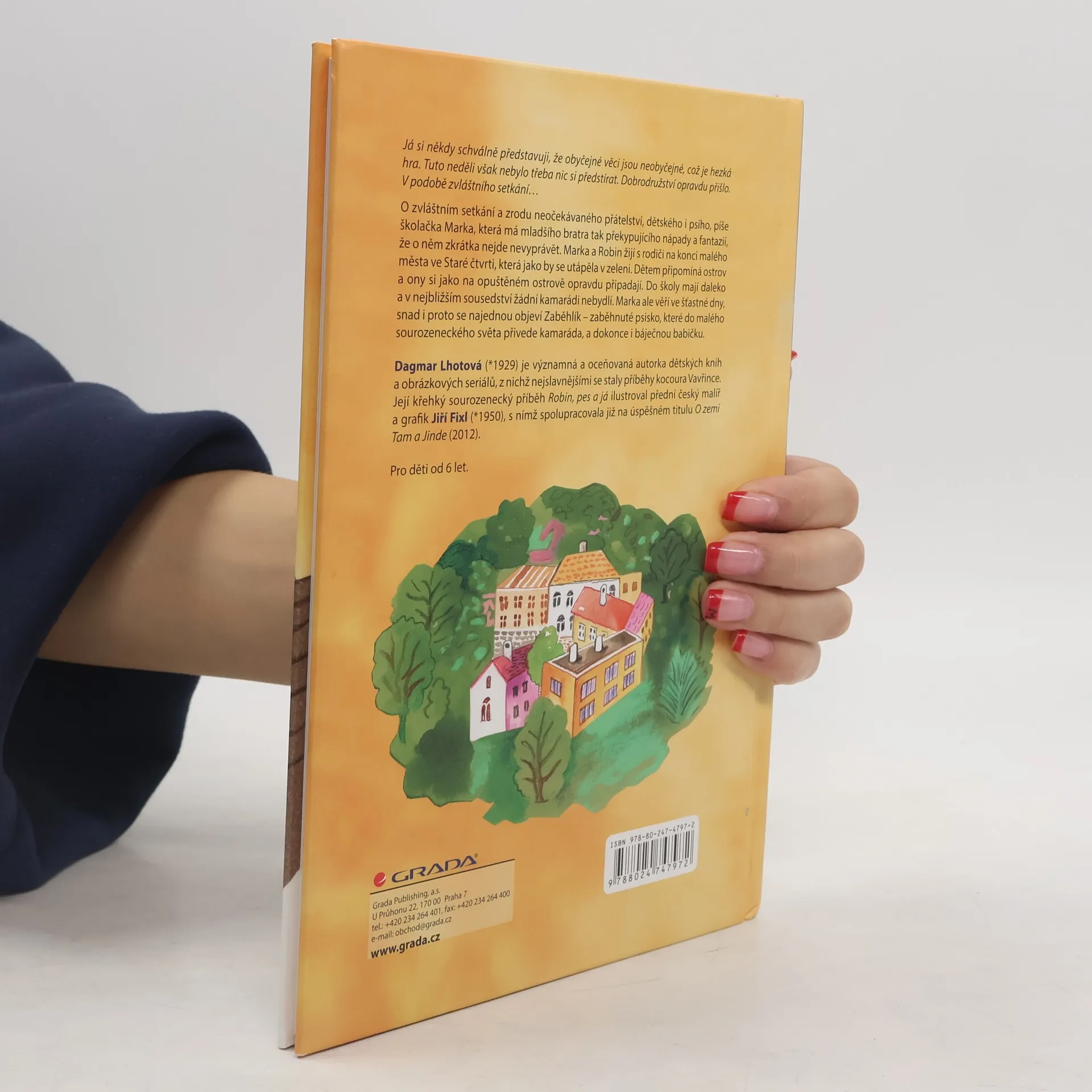 Autorka slavných obrázkových seriálů o kocourovi Vavřincovi přichází s příběhem dvou sourozenců, kteří se na konci malého města, kde žijí se svými rodiči, cítí tak trochu jako robinzoni na pustém ostrově. Z jejich osamocení je nečekaně vytrhne zaběhnuté psisko, které jim do života přivede nové, nejen psí, přátelství. Dobrodružství školačky Marky a jejího neobyčejného bratra Robina ilustroval přední český malíř a grafik Jiří Fixl.