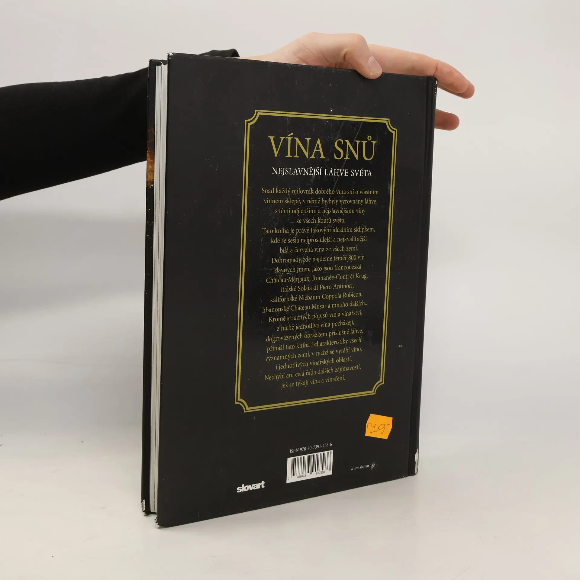 Snad každý milovník dobrého vína sní o tom mít svůj vlastní vinný sklep, kde by se skvěla ta nejlepší vína ze všech koutů světa. Tato kniha je vlastně takovým sklepem, v němž se nachází pohromadě výběr téměř 800 láhví s nejkvalitnějšími a nejproslulejšími bílými a červenými víny ze všech zemí. Najdeme zde vedle sebe slavná jména jako například francouzská Château Margaux, Romanée-Conti a Krug, libanonský Château Musar, italské Solaia di Piero Antinori, kalifornský Niebaum Coppola Rubicon a celou řadu dalších. Jednotlivé vinařské oblasti jsou v úvodních pasážích vždy charakterizovány, načež následují jednotlivá vína z daného regionu. U každého vína je stručná charakteristika vinařství i samotného vína, a nechybí ani obrázek láhve, aby se čtenář dozvěděl opravdu všechn
