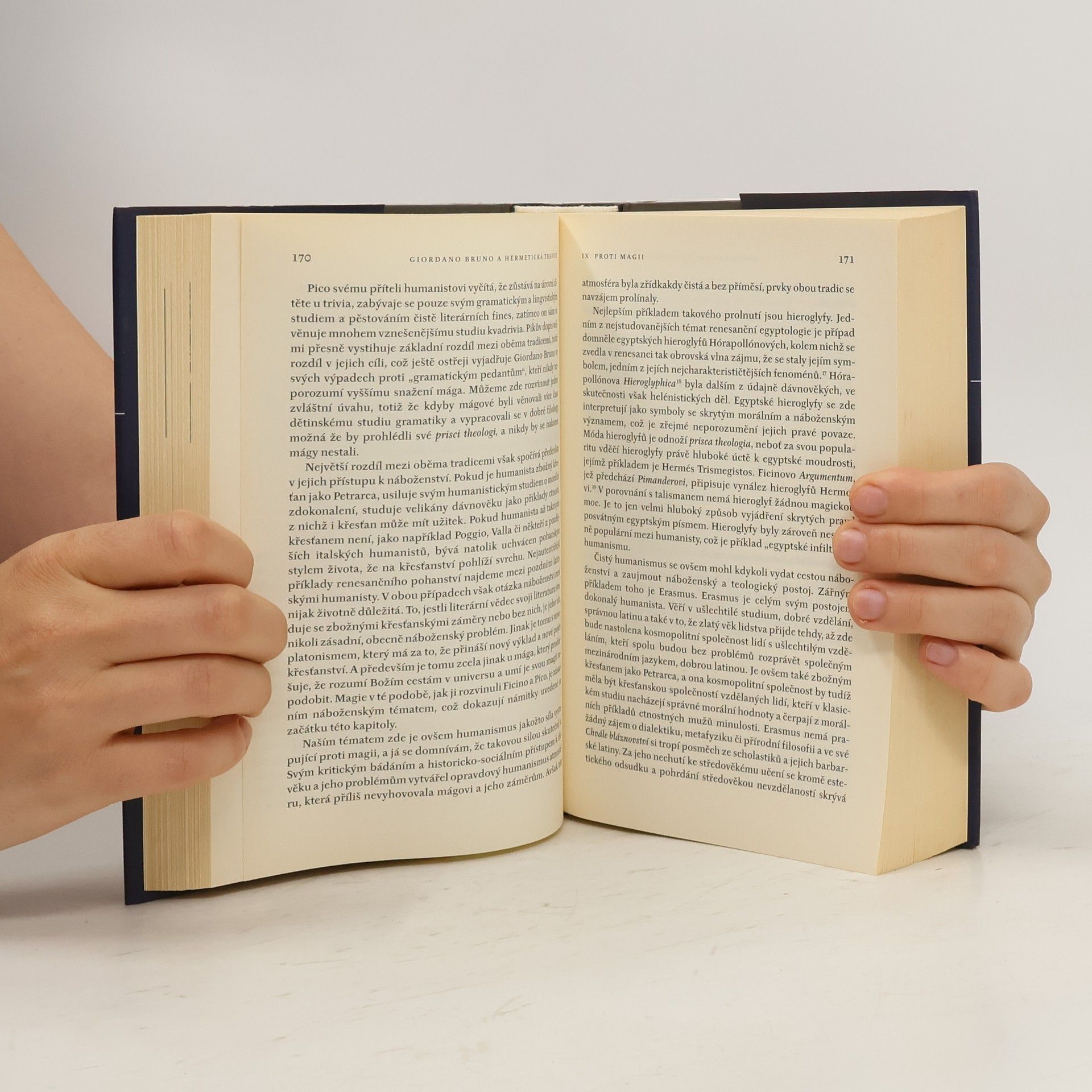 Anglická badatelka a znalkyně myšlení 16. a 17. století ve své slavné monografii odhaluje jeden z významných proudů duchovních dějin Evropy. V první třetině načrtává obraz hermetické tradice mezi antikou a Ficinovým latinským překladem Corpus Hermeticum v 15. století. V řečišti mohutného myšlenkového proudu, jenž odtud vyvěrá, spatřuje Yatesová také zdroje Brunova magicko-filosofického myšlení, které je jedním z nejklasičtějších a nejznámějších jeho produktů. Poslední třetina bezmála pětisetstránkové knihy je věnována ohlasům Brunova myšlení a tradice hermetismu, která se záhy konfrontuje s novým, karteziánským pojímáním světa. To fascinujícím způsobem předvádí závěrečná polemika mezi Descartovým stoupencem Mersennem a přesvědčeným hermetikem Fluddem. Český překlad doprovází studie Zdeňka Neubauera.