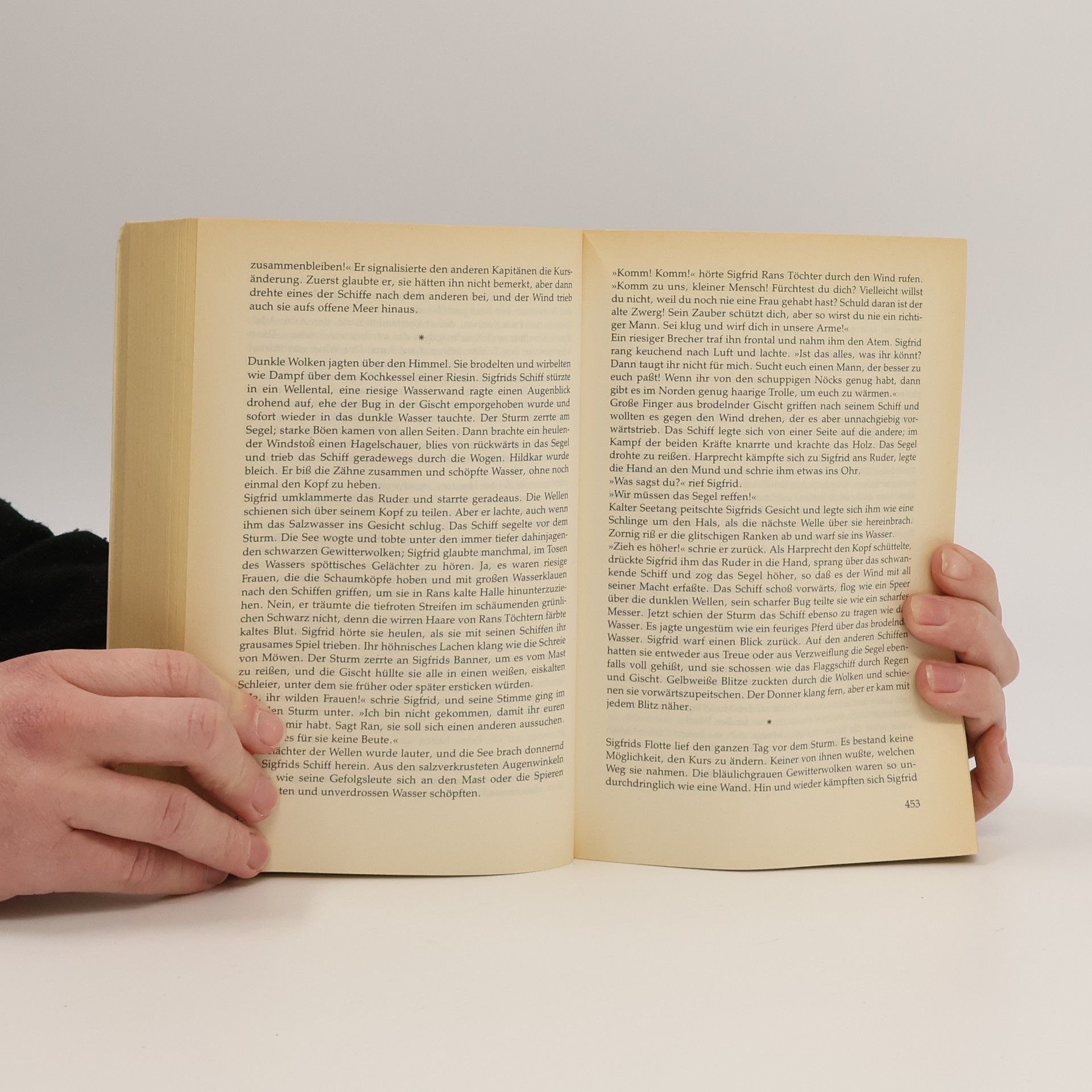 Rheingold. Stephan Grundy erzählt nicht einfach den Mythos nach, er schreibt über Menschen, die unter schwierigen Konstellationen leben und auf ihre Weise versuchen, das Beste daraus zu machen. Jeder geht seinen individuellen Weg, auch in der von den Göttern bestimmten Welt. „Rheingold“ ist daher nicht nur die Geschichte von den Wälsungen, von Sigmund, Siglind und Sigfrid, dem Drachentöter, eine Geschichte über die Gier nach Macht, die Hoffnung auf Liebe und den Wunsch, mit den göttlichen Gesetzen in Einklang zu leben. Es ist auch die Geschichte von Fabelwesen und Göttern, die sich und die Ihren sammeln für einen letzten Kampf, bevor auch ihre Zeit abläuft. Die Schicksale der Menschen und der Götter sind eng miteinander verwoben. Die Götter zeigen menschliche Bedürfnisse, und die Menschen haben magische Fähigkeiten. Beide stehen in so engem Zusammenhang, daß auch ihr Untergang unvermeidbar miteinander verknüpft ist.