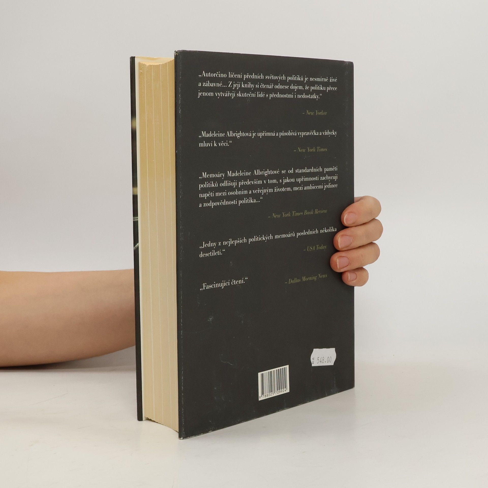 Autorka se coby americká ministryně zahraničí během dvou prezidentských období Billa Clintona podílela na zásadních politických rozhodnutích své doby a účastnila se nejednoho dějinného dramatu, od mírových jednání na Blízkém Východě přes zásah NATO na Balkáně po politické střety s Iránem či Irákem. Pozoruhodný však byl i autorčin předchozí život - jakožto dcera českého diplomata se už v dětství pohybovala ve vysokých diplomatických kruzích; jakožto nadaná studentka, pocházející ovšem z komunistického Československa, se musela zorientovat v nové vlasti; jako uznávaná diplomatka musela sloučit náročnou kariéru a rodinný život…O tom všem Madeleine Albrightová dokáže vyprávět se svým příslovečným šarmem a jemným, inteligentním humorem - a výsledkem je jeden z nejlepších politických memoárů posledních několika desetiletí.