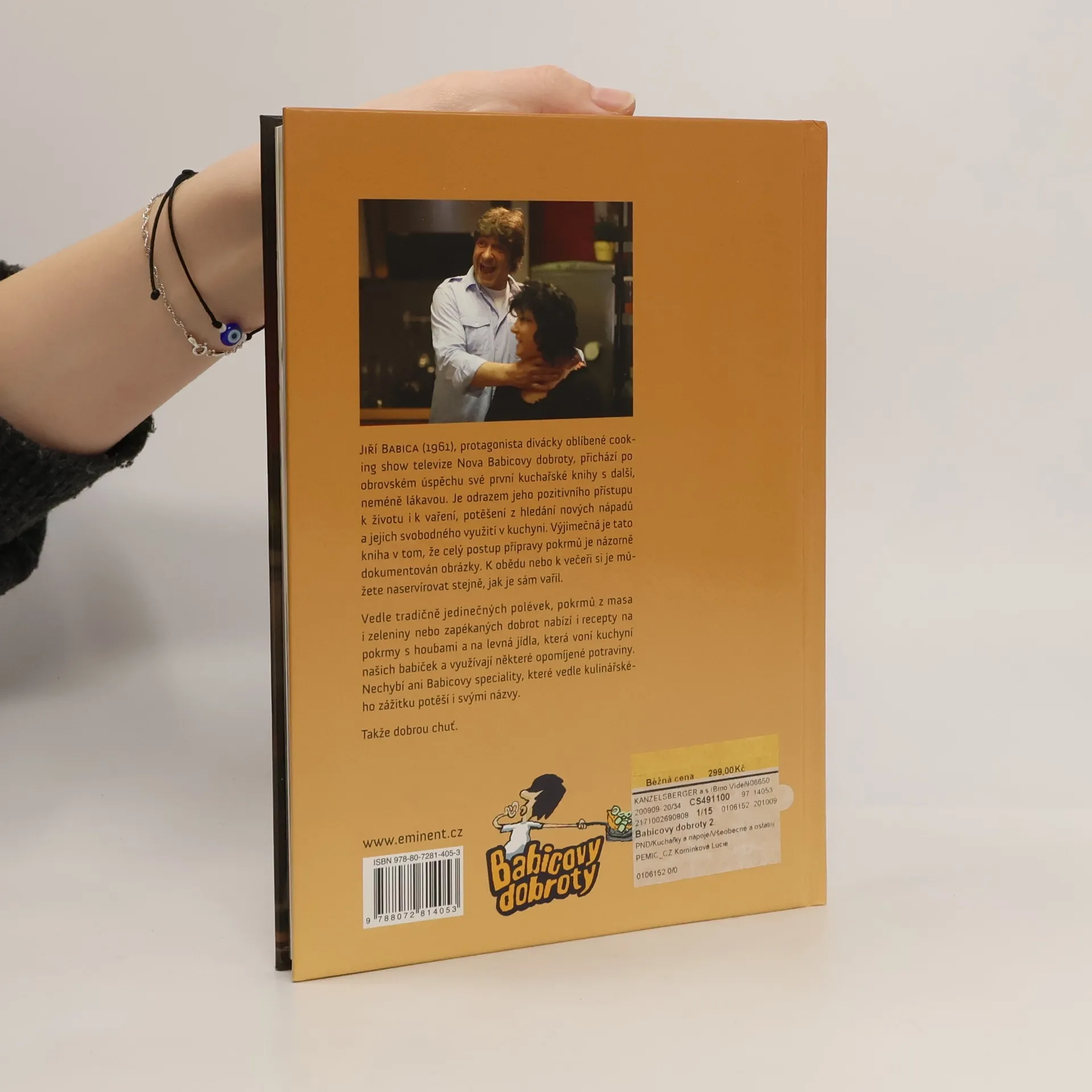 Jiří Babica (1961), protagonista oblíbené cooking show Babicovy dobroty televize Nova, přichází po obrovském úspěchu první se svojí další kuchařskou knihou. Je naplněna jeho pozitivním přístupem k životu i k vaření, potěšením z hledání nových nápadů a jejich svobodným využitím v kuchyni. Výjimečná je v tom, že přináší názorné postupy, které dokumentují celou přípravu jídel. K obědu nebo k večeři si je můžete naservírovat stejně, jak je sám vařil. Vedle tradičně jedinečných polévek, pokrmů z masa i zeleniny nebo zapékaných dobrot nabízí i recepty na pokrmy s houbami a levná jídla, která voní kuchyní našich babiček a využívají některé opomíjené potraviny. Nechybí ani Babicovy speciality, které vedle kulinářského zážitku potěší i svými názvy. Takže dobrou chuť.