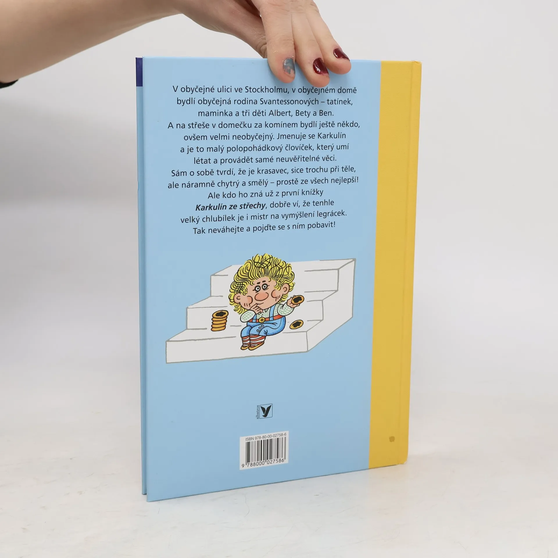 V obyčejné ulici ve Stockholmu, v obyčejném domě bydlí obyčejná rodina Svantessonových – tatínek, maminka a tři děti Albert, Bety a Ben. A na střeše v domečku za komínem bydlí ještě někdo, ovšem velmi neobyčejný. Jmenuje se Karkulín a je to malý polopohádkový človíček, který umí létat a provádět samé neuvěřitelné věci. I v této knížce je Karkulín mistr ve vymýšlení legrace.