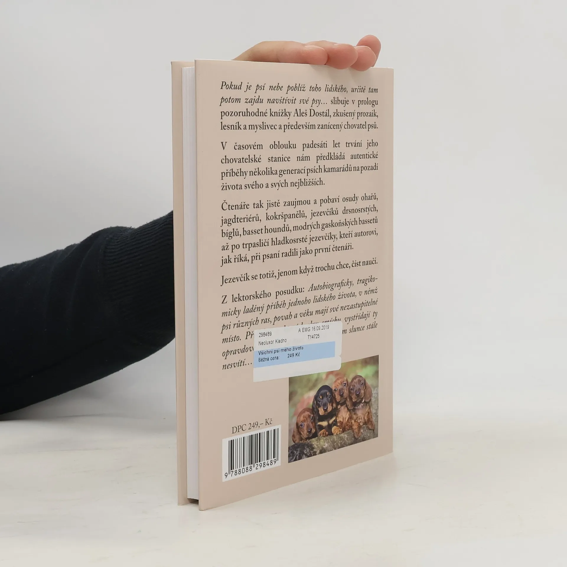Osudy ohařů, jagdteriérů, kokršpanělů, jezevčíků drsnosrstých, bíglů, basset houndů, modrých gaskoňských bassetů až po trpasličí hladkosrsté jezevčíky, kteří autorovi, jak říká, při psaní radili jako první čtenáři. Jezevčík se totiž, jenom když trochu chce, číst naučí. Autobiograficky, tragikomicky laděný příběh jednoho lidského života, v němž psi různých ras, povah a věku mají své nezastupitelné místo. Nakladatelská anotace. Kráceno.