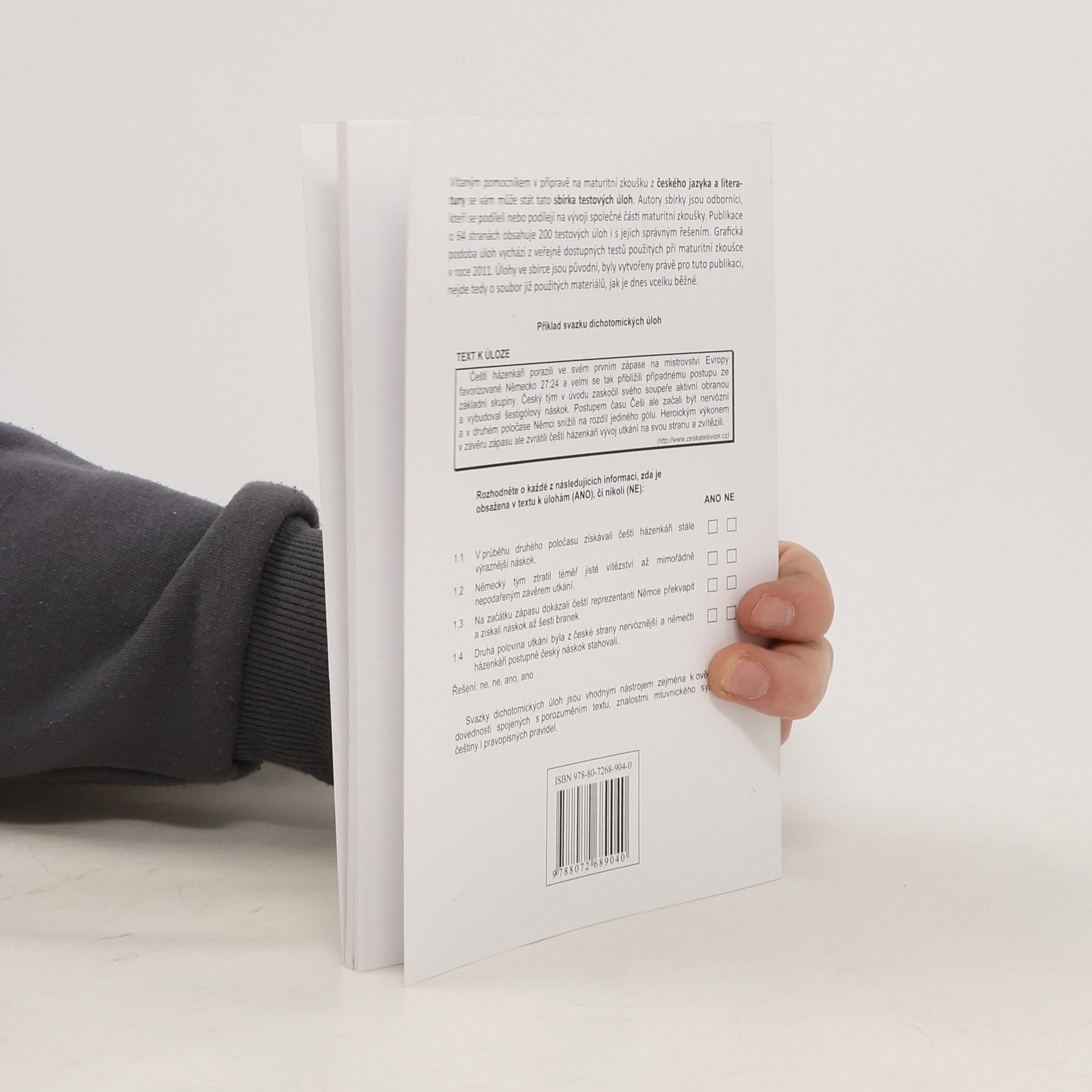 Vítaným pomocníkem v přípravě na maturitní zkoušku z českého jazyka a literatury se vám může stát tato sbírka testových úloh. Autory sbírky jsou odborníci, kteří se podíleli nebo podílejí na vývoji společné části maturitní zkoušky. Publikace o 64 stranách obsahuje 200 testových úloh i s jejich správným řešením. Grafická podoba úloh vychází z veřejně dostupných testů použitých při maturitní zkoušce v roce 2011. Úlohy ve sbírce jsou původní, byly vytvořeny právě pro tuto publikaci, nejde tedy o soubor již použitých materiálů, jak je dnes vcelku běžné.