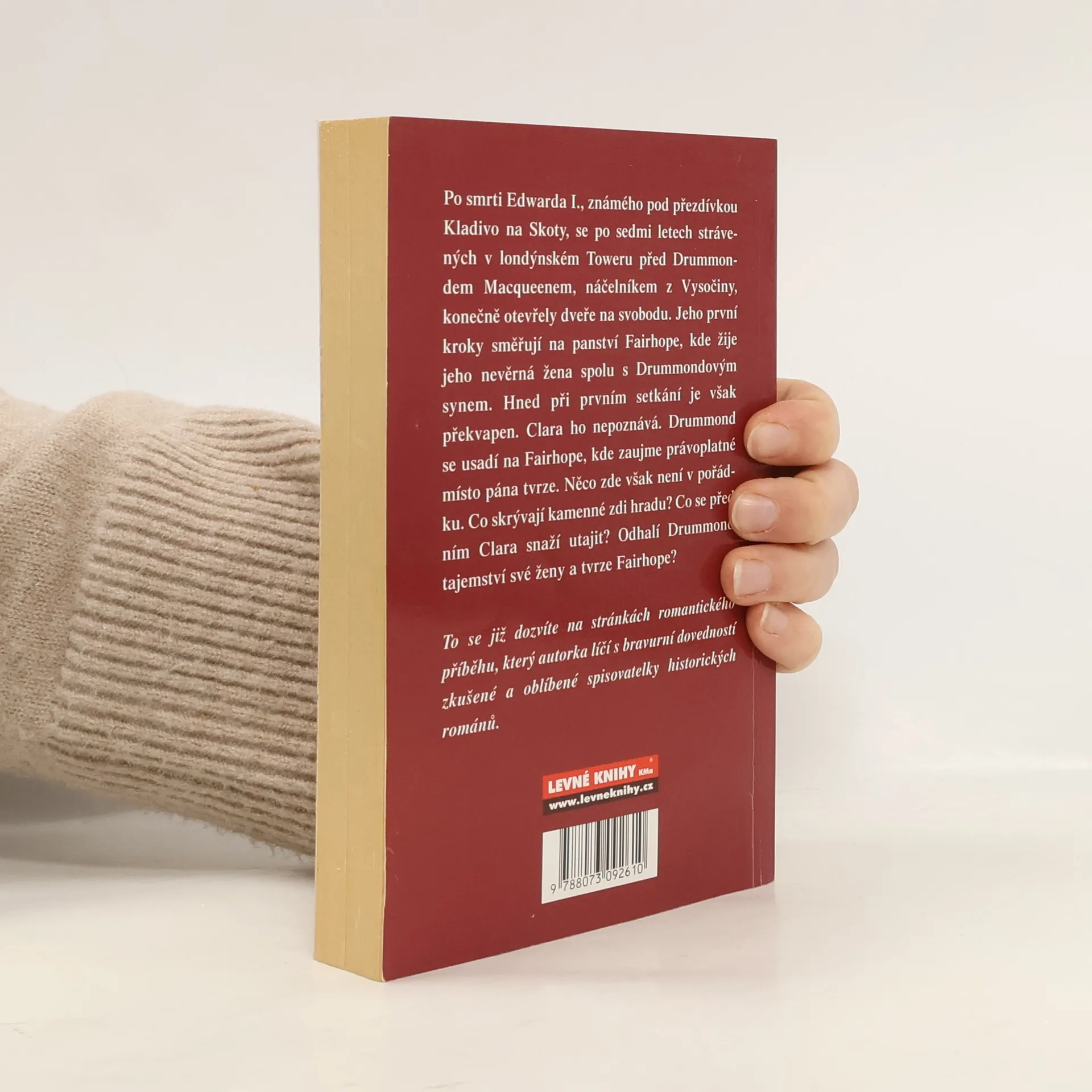 Po smrti Edwarda I., známého pod přezdívkou Kladivo na Skoty, se po sedmi letech strávených v londýnském Toweru před Drummondem MacQueenem, náčelníkem z Vysočiny, konečně otevřely dveře na svobodu. Jeho první kroky směřují na panství Fairhope, kde žije jeho nevěrná žena spolu s Drummondovým synem. Hned při prvním setkání je však překvapen. Clara ho nepoznává. Drummond se usadí na Fairhope, kde zaujme právoplatné místo pána tvrze. Něco zde však není v pořádku. Co skrývají kamenné zdi hradu? Co se před ním snaží Clara utajit? Odhalí Drummond tajemství své ženy a tvrze Fairhope? To se dozvíte na stránkách tohoto romantického příběhu, který autorka líčí s bravurní dovedností zkušené a oblíbené spisovatelky historických románů.